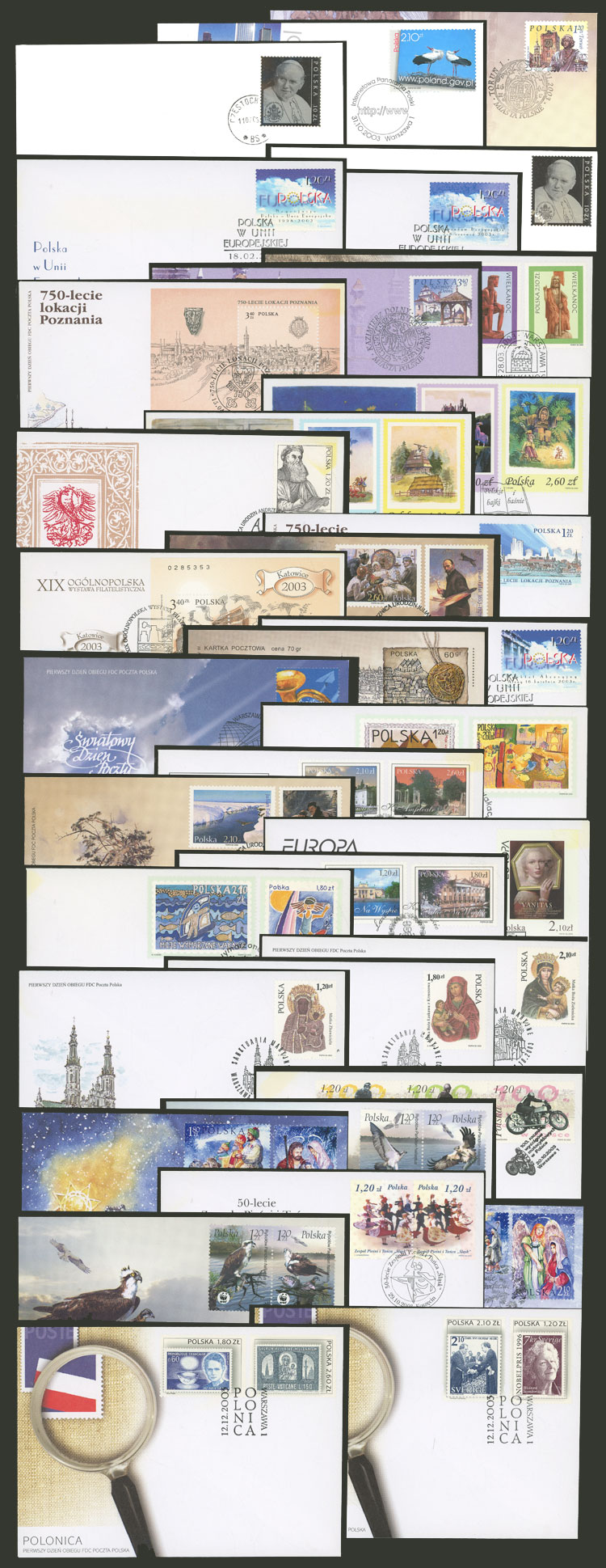 Year 2003: Lot of covers with first day postmarks + some with special postmarks of several stamps issued in 2003, in general of very fine quality, low start! IMPORTANT: Please view ALL the photos of the lot, because all the items have