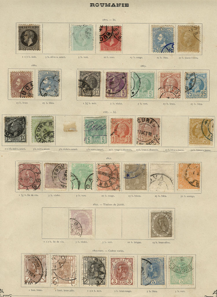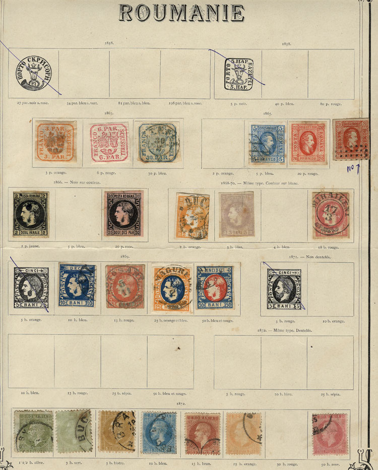 Collection in very old album pages, including scarce and interesting stamps and it may also include color varieties and rare postmarks, mixed quality from very fine to stamps with defects, Scott catalog value US$1,000+, good opportunity