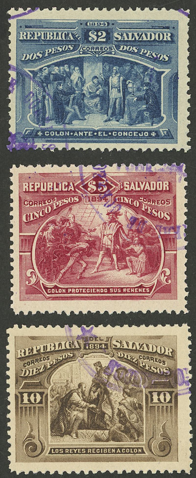Sc.101/3, 1894 Columbus, the 3 high values of the set, used, VF quality, rare! (Image)