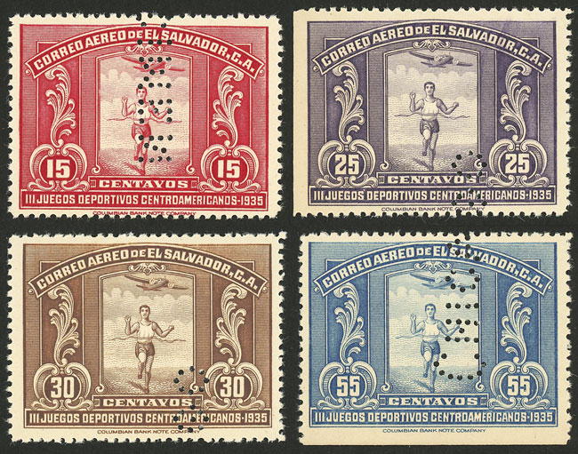 31/34, 1935 Sport, 4 values of the set perforated "CHICAGO" or "SPECIMEN" (specimens), excellent quality! (Image)