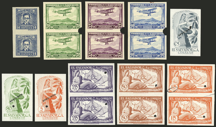 imperforate pairs, almost all with punch hole + 3 singles overprinted "SPECIMEN" and also with punch hole, excellent! (Image)
