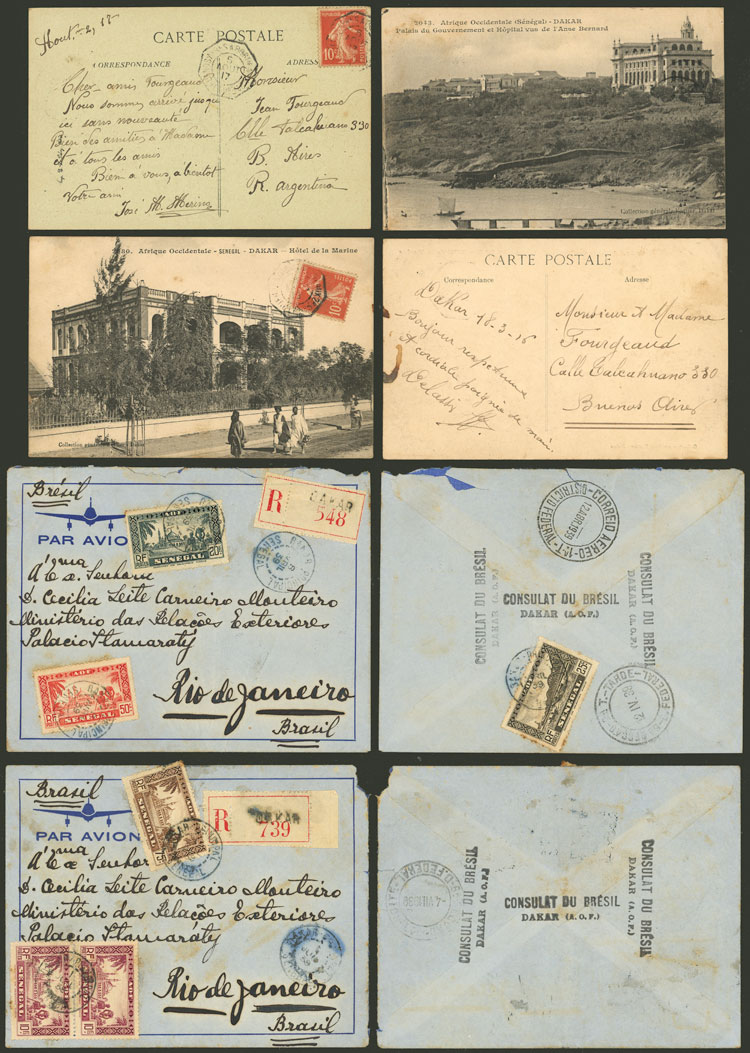 Postcards + 2 airmail covers sent to Argentina and Brazil with nice postages and cancels, low start! IMPORTANT: Please view ALL the photos of the lot, because all the material has been scanned. (Image) (Image-02)