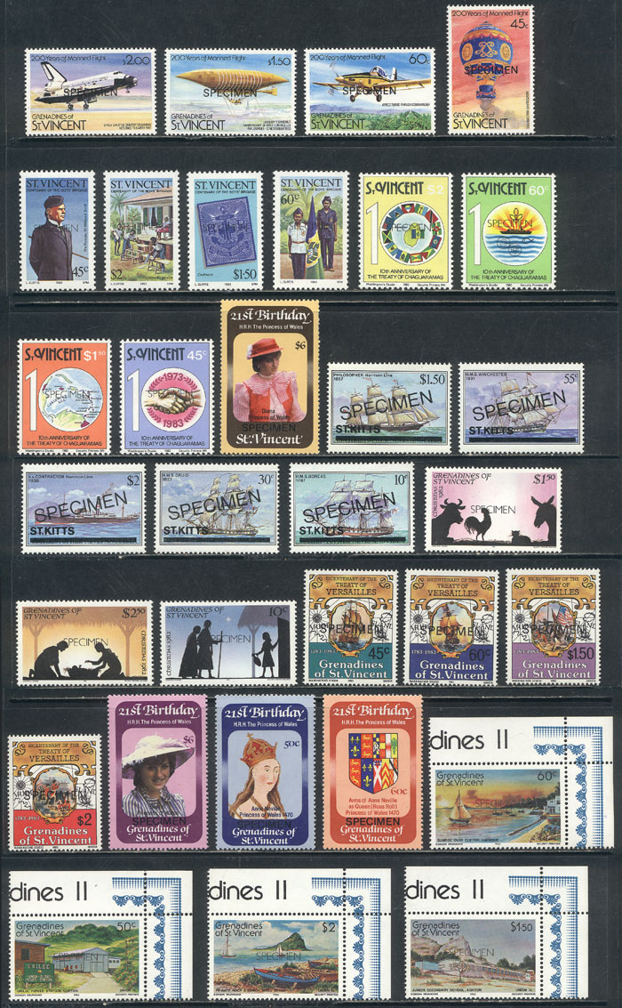 VERY THEMATIC modern sets (including some of Granadines or St. Kitts), all with SPECIMEN overprint, excellent quality, low start! (Image)