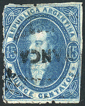 extremely rare example in VERY DARK BLUE, absolutely clear impression, with mute cancel of Gualeguaychú in blue, fantastic! (Image)