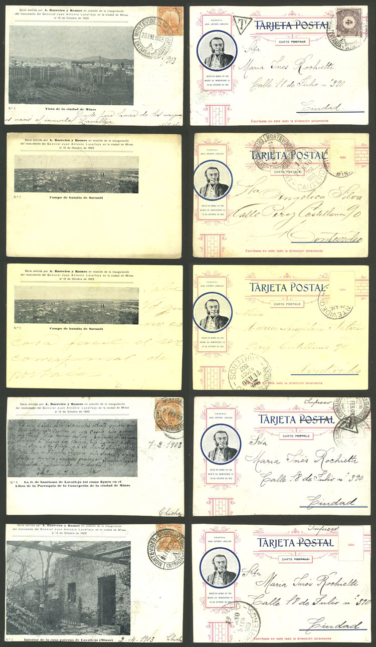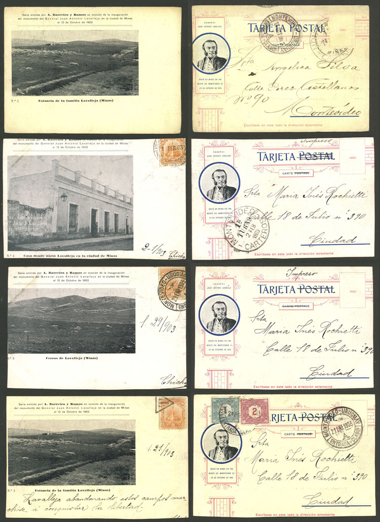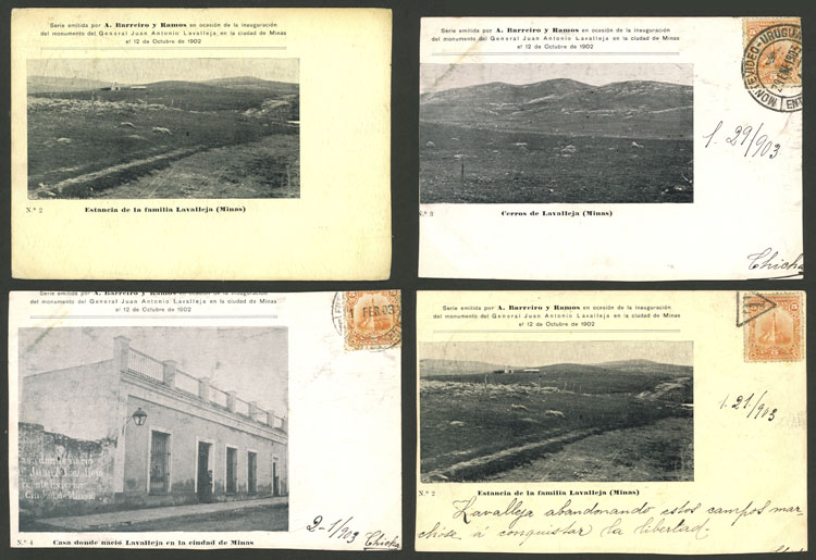 Inauguration of monument to Lavalleja in Minas (1902), 9 rare postcards with very good views, several trimmed, very interesting, low start! Important: please view ALL the photos of the lot, because all the cards have been scanned (both