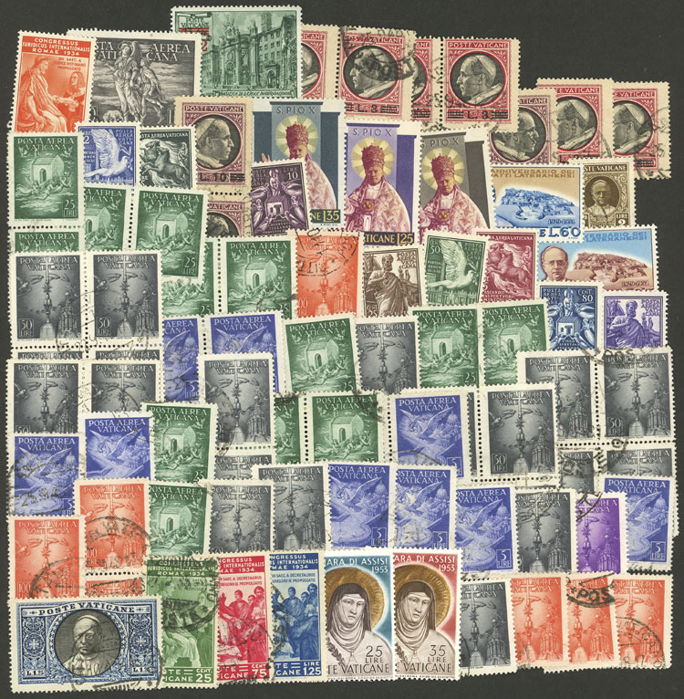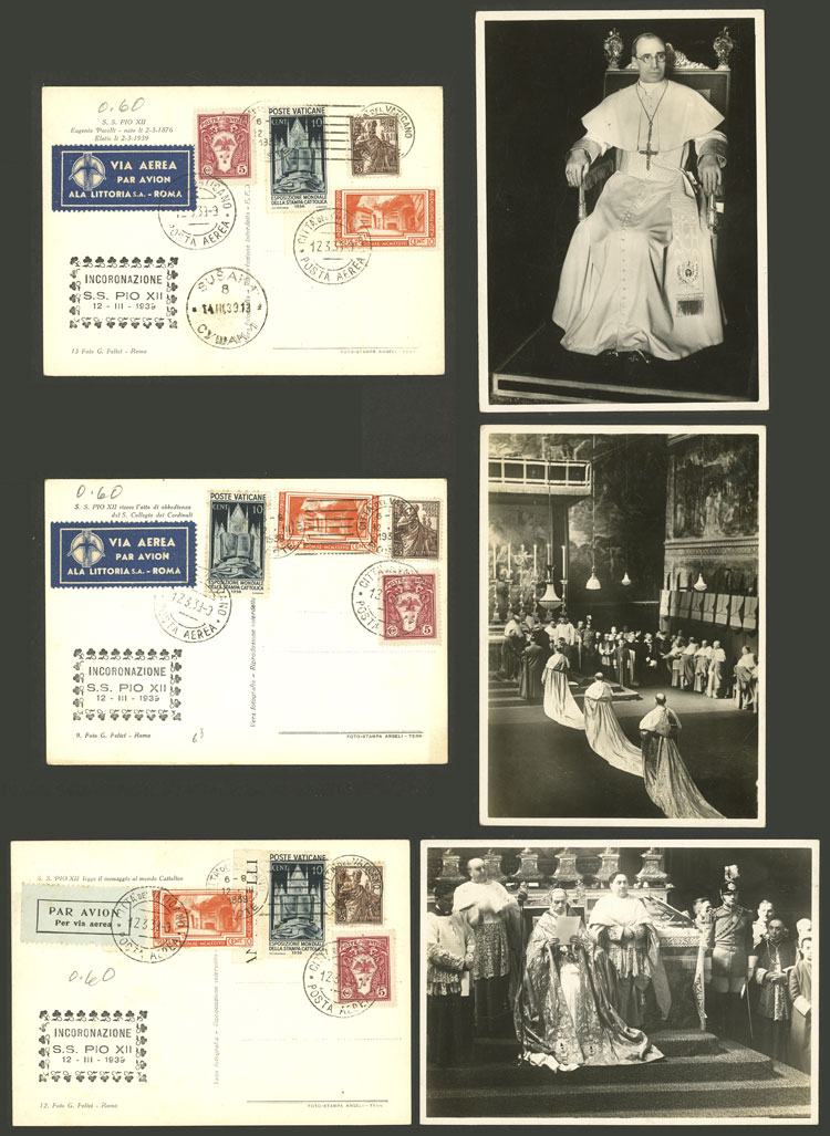 Postcards with views of the coronation of Pope Pius XII, nice postages and cancels of that day (12/MAR/1939), excellent quality! (Image)