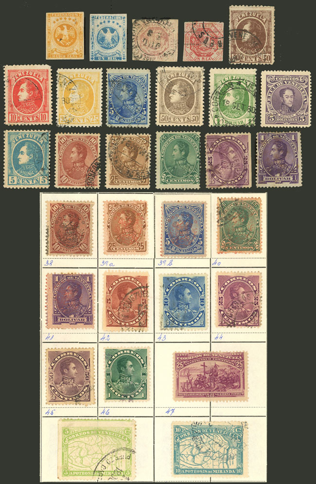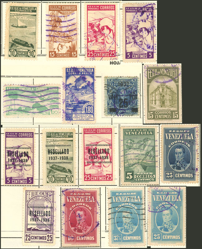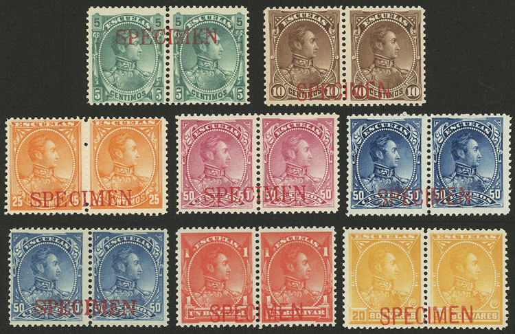 33/37 + 40, 1882 Bolivar, 8 pairs overprinted SPECIMEN (of the 50c. we include another 2 pairs in different colors), excellent quality, rare lot! (Image)