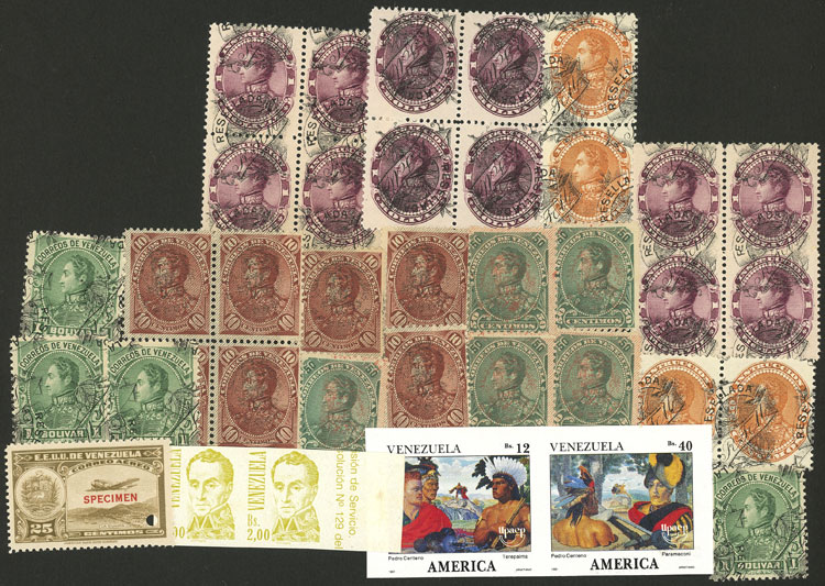 lot with 2 modern imperforate pairs + an airmail stamp with SPECIMEN overprint + good number of old stamps with inverted overprints (singles and blocks of 4, duplication), VERY HIGH CATALOG VALUE, good opportunity at low start! (Image)