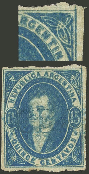 printing, with double ellipse cancel of ROSARIO WITHOUT FRANCA (very rare), excellent quality! (Image)