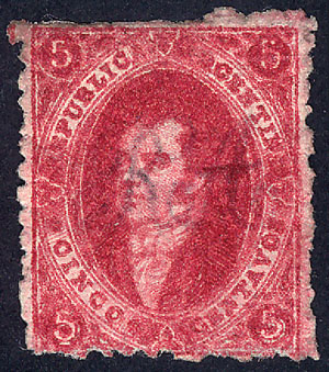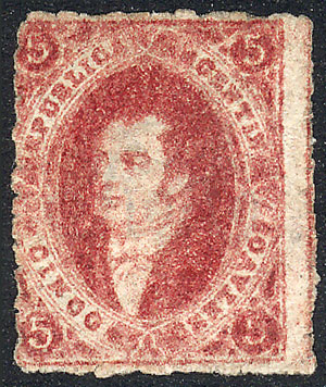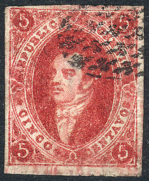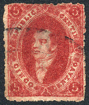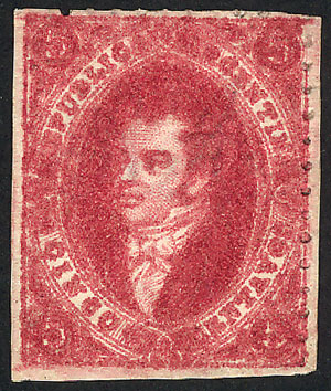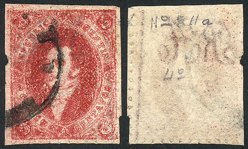 printing, dark rose, CLEAR IMPRESSION, dirty plate, with PASO DE LOS LIBRES cancel, VF quality! (Image)