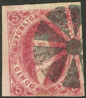 5th printing, orange-red, parchment-like paper, with straightline CORDOBA cancel, VF and rare! (Image)