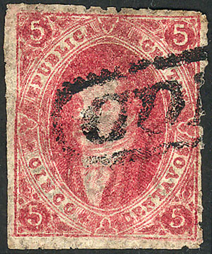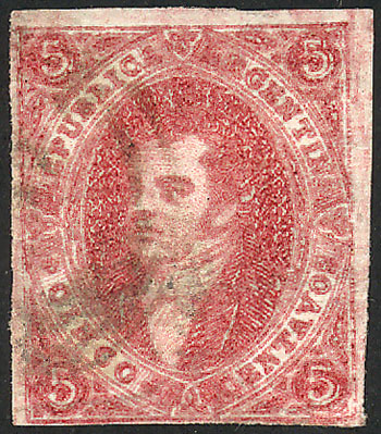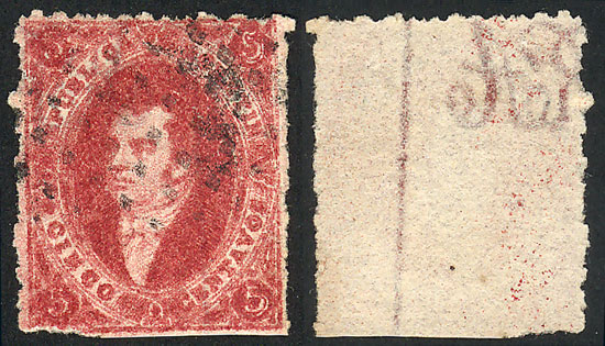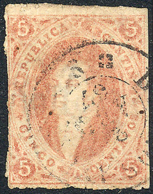 6th printing perforated, orangish dun-red color, worn impression, used in Buenos Aires on 2/AP/1867, very fine quality, rare! (Image)