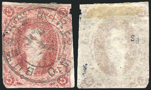 printing, on VERY THIN TRANSLUCENT paper, datestamp of Buenos Aires, good example, very rare! (Image)