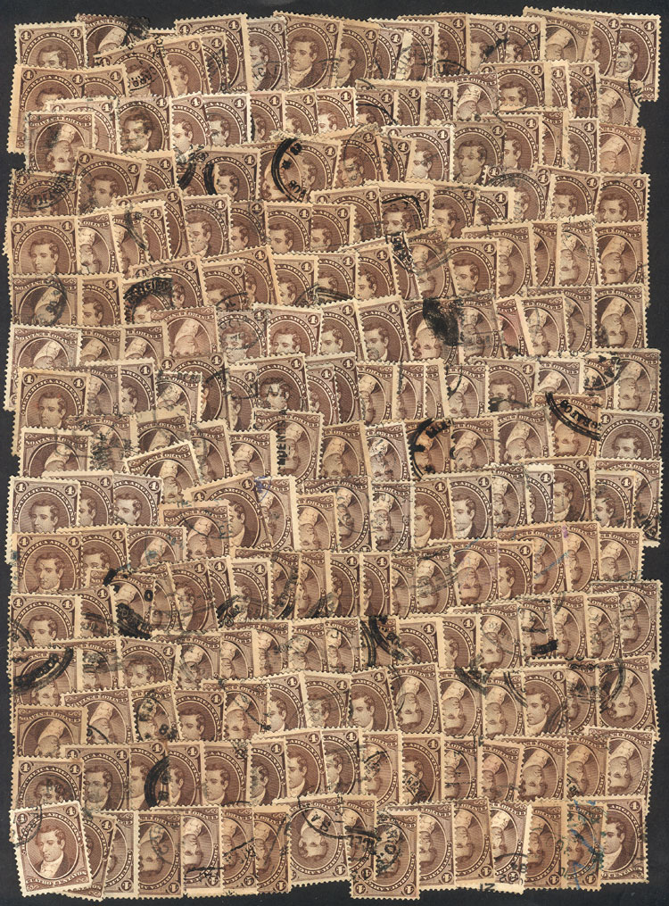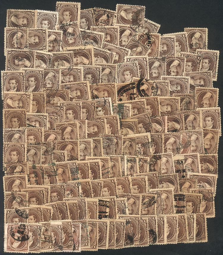 GJ.36, 1867/73 4c. Moreno, more than 600 used stamps, most of fine to excellent quality, catalog value US$600+, good opportunity for study, old stamps in lots of this type are rare!! (Image) (Image-02)