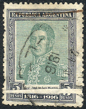 1916 Centenary of Independence 5P. with notable PAPER FOLD, VF quality, extremely rare variety in this stamp! (Image)
