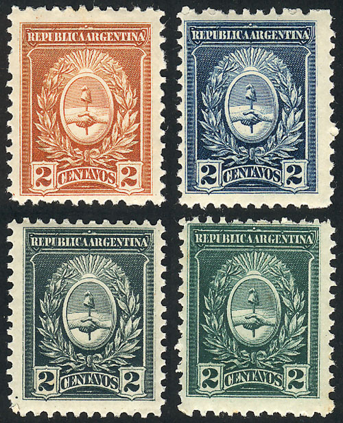 1910, 4 essays on an unadopted design, 2c. Coat of arms, perforated and gummed, MNH, superb! (Image)