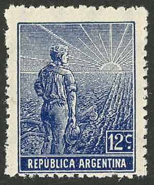 1912 12c. Plowman, German paper, vertical honeycomb wmk, PERFORATION 13½, MNH without hinge or stain marks, as fresh and impeccable as the day it was printed, superb, catalog value US$60 (considering the MNH surcharge) (Image)