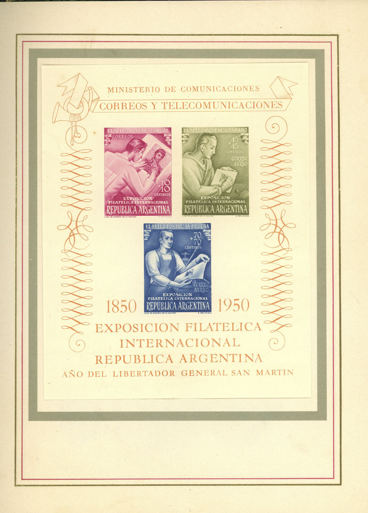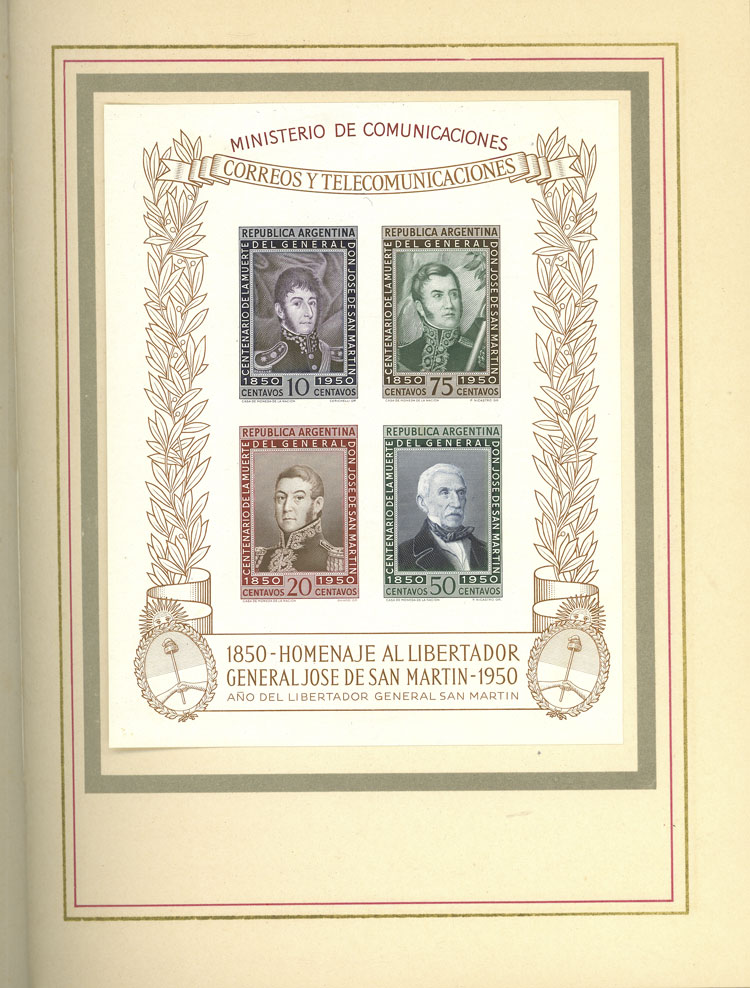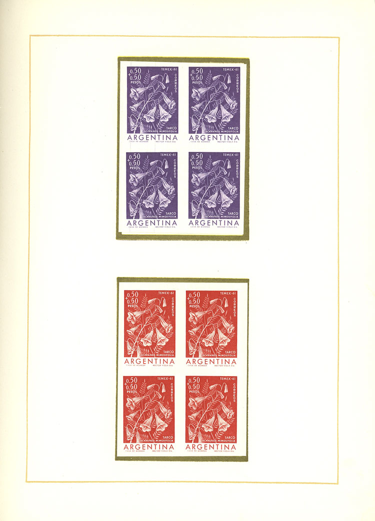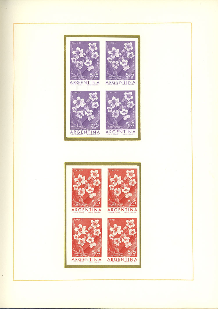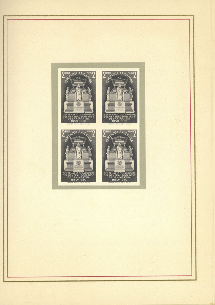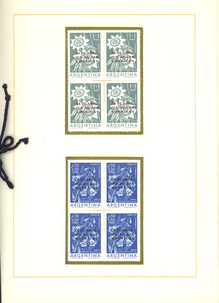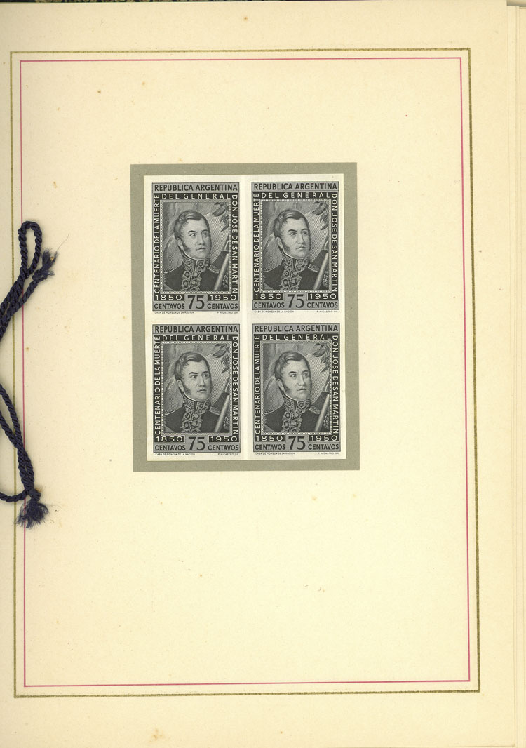 1948 Commemoration of October 17, Peronist Loyalty Day, trial color PROOFS in blocks of 4, 4 different colors, VF quality! (Image)