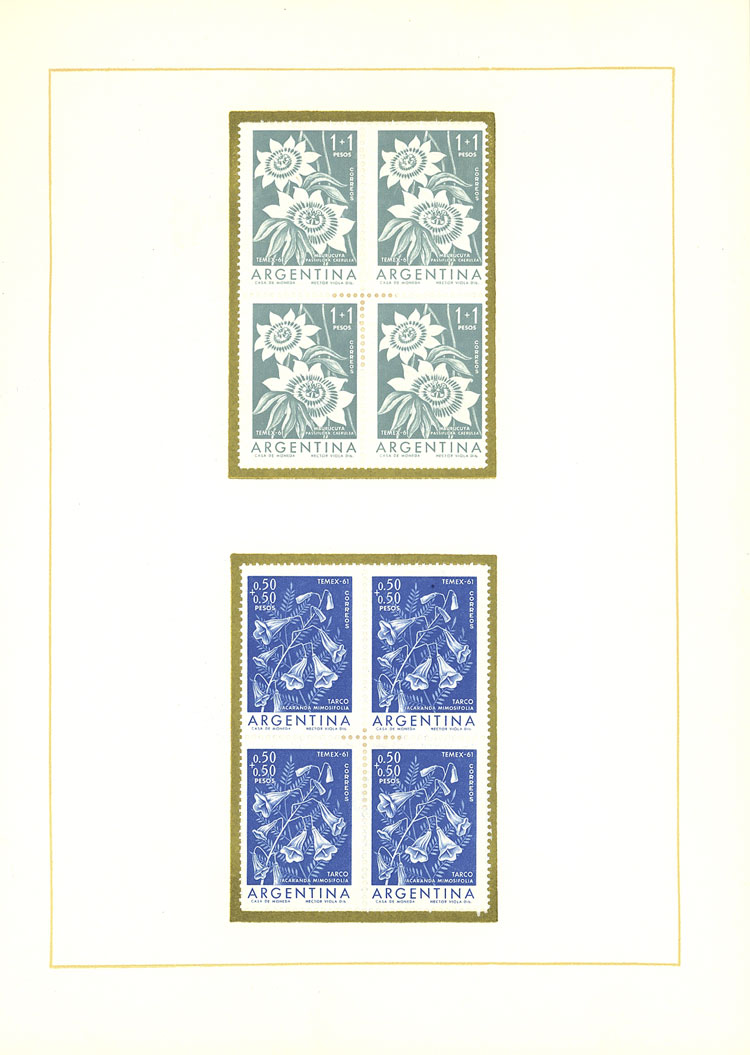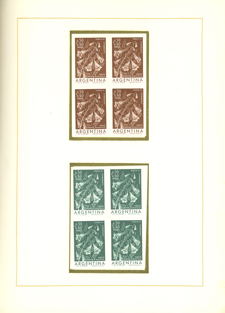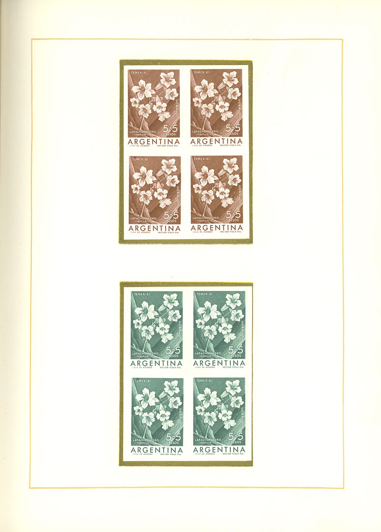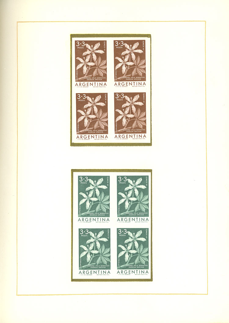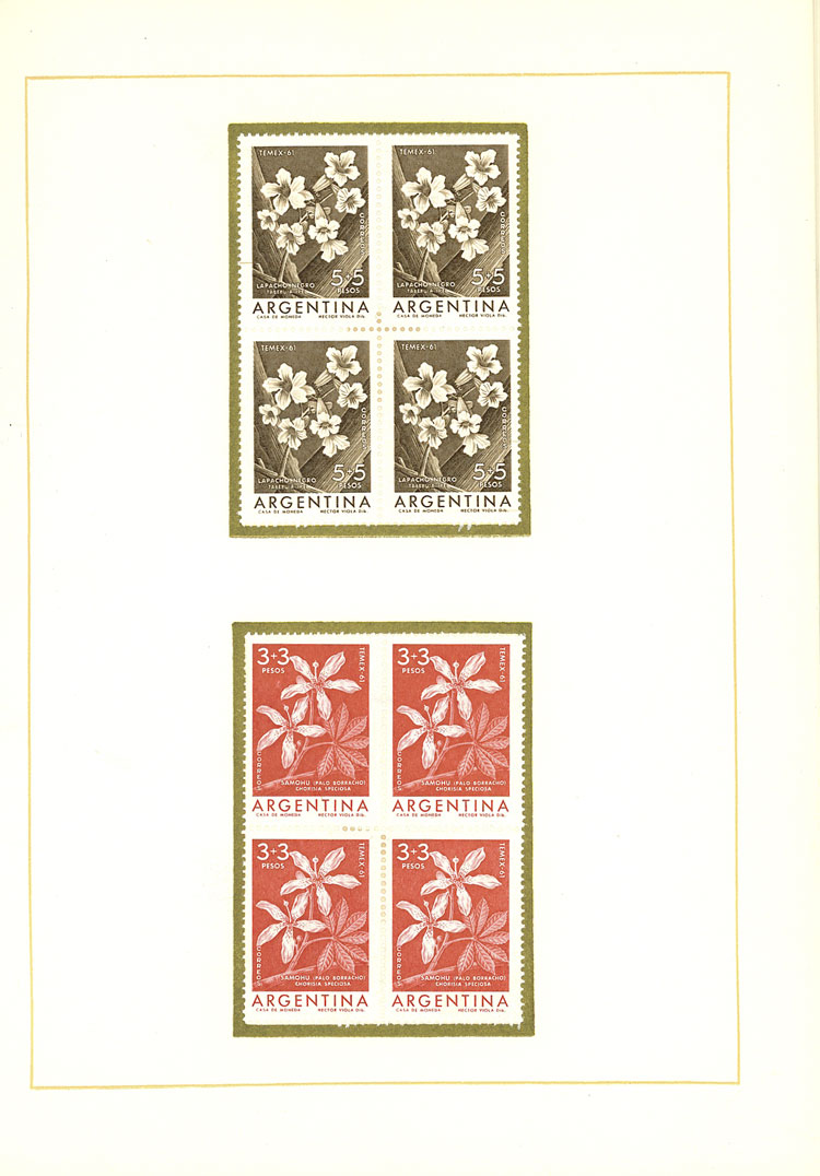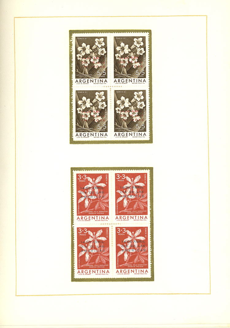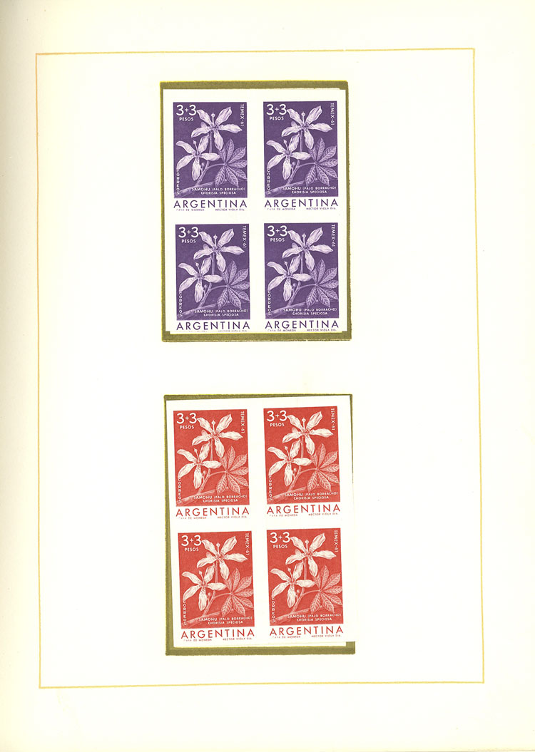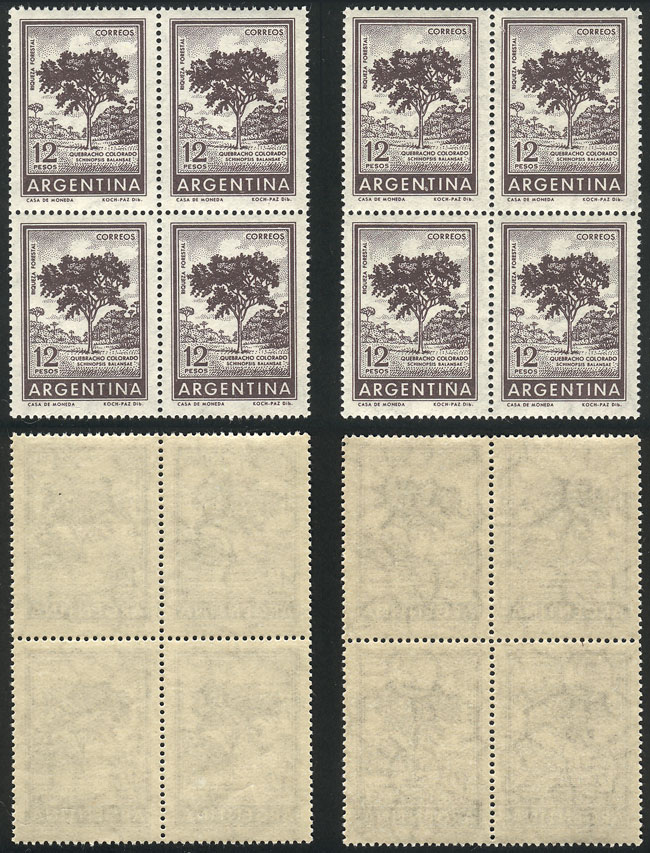 12P. Quebracho tree, offset, 2 blocks of 4, VERY DIFFERENT PAPERS (one thin and translucent, rare!). Catalog value US$80++ (Image)