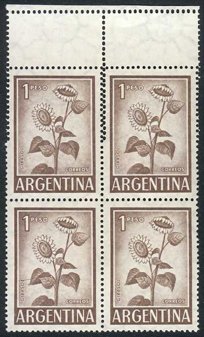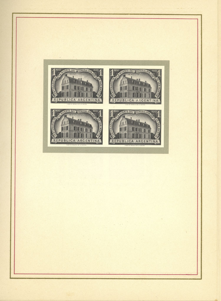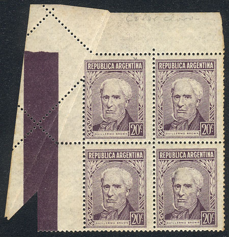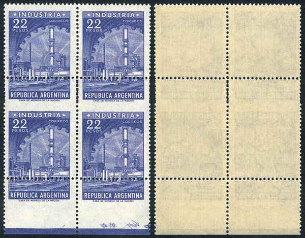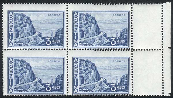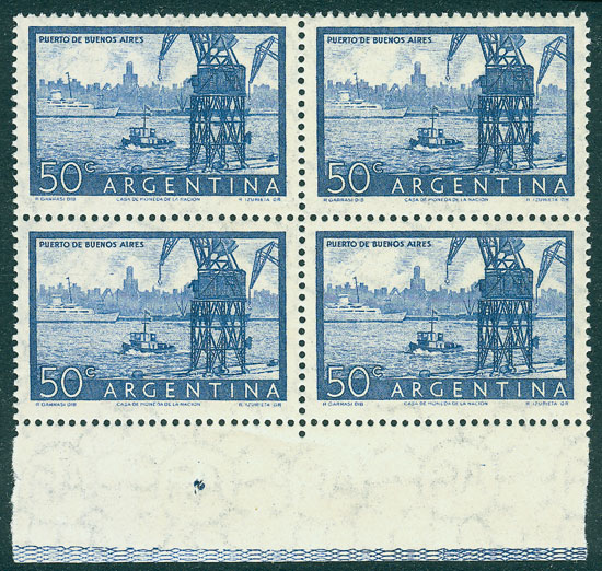50c. Port of Buenos Aires, printed on IMPORTED UNSURFACED PAPER, marginal block of 4, unmounted and absolutely fresh, perfect and of excellent quality, catalog value US$160.