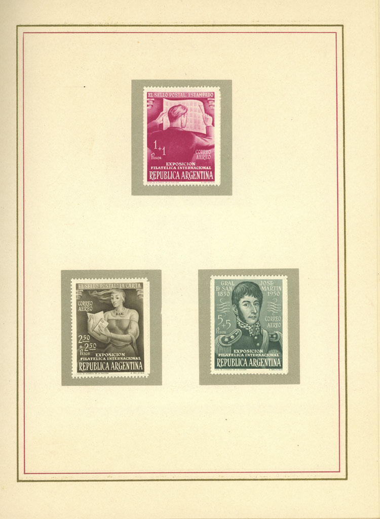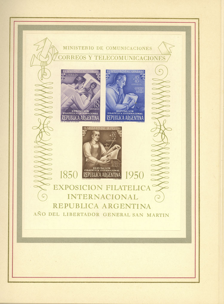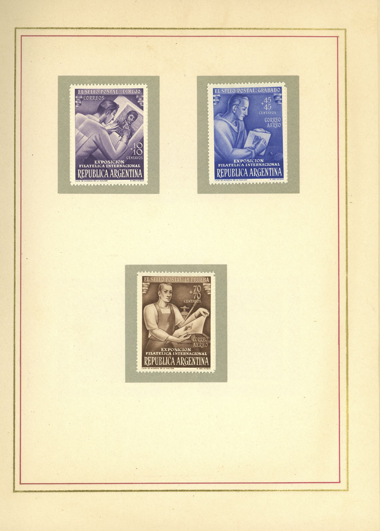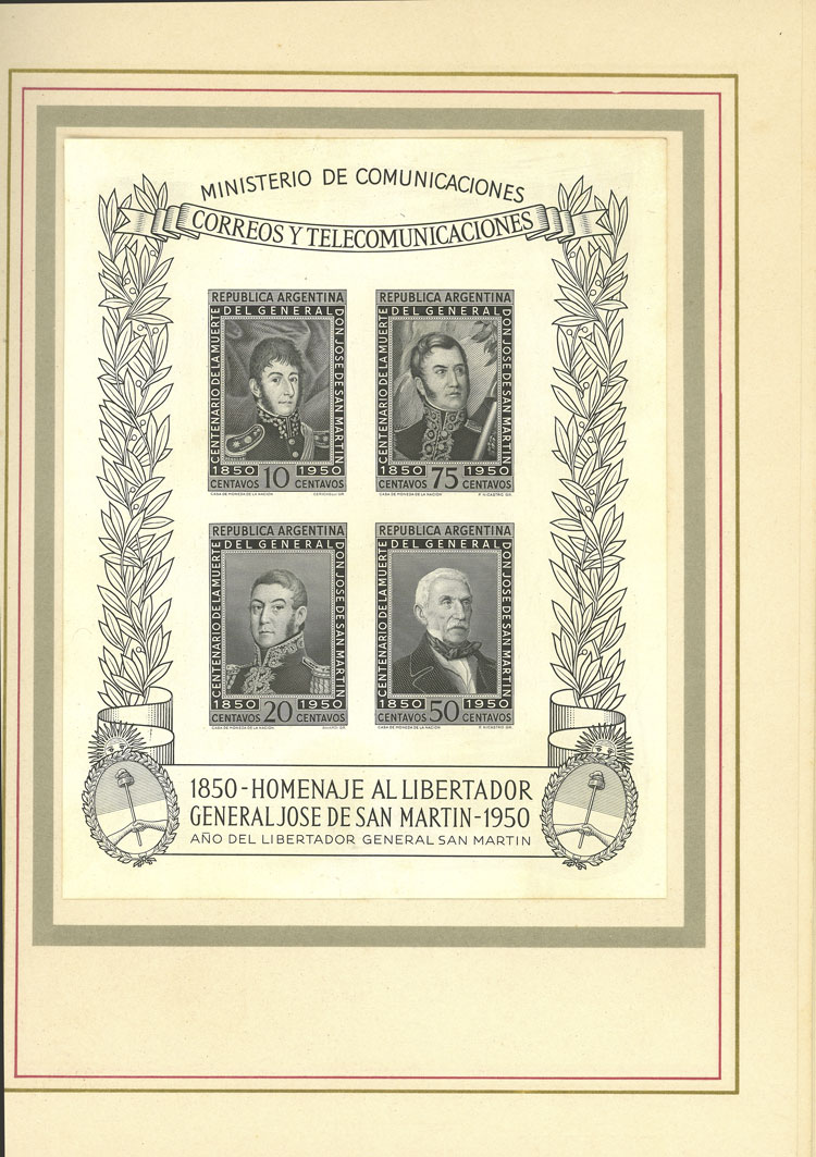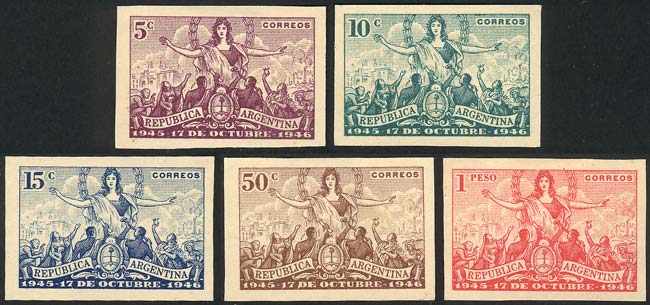 GJ.935/939, 1946 Peronist movement of October 17, PROOFS in the adopted colors, printed on paper, imperforate and without gum, VF and rare! (Image)