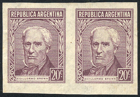 20c. Brown, IMPERFORATE PAIR, VF quality! (Image)