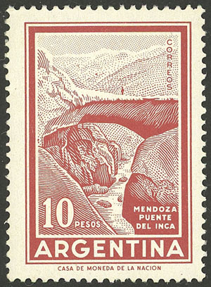 1969/71 10P. Incan bridge, WITH round sun watermark, MNH, excellent quality! (Image)