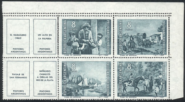 1966 Paintings, set printed in block of 4 with DOUBLE PERFORATION variety, VF quality, fantastic! (Image)