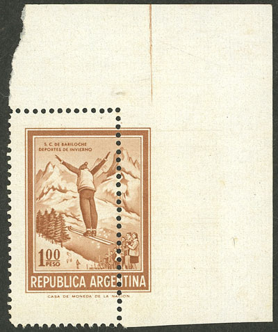 1P. Skier with Casa de Moneda wmk, fantastic variety of very shifted perforation, very attractive! (Image)