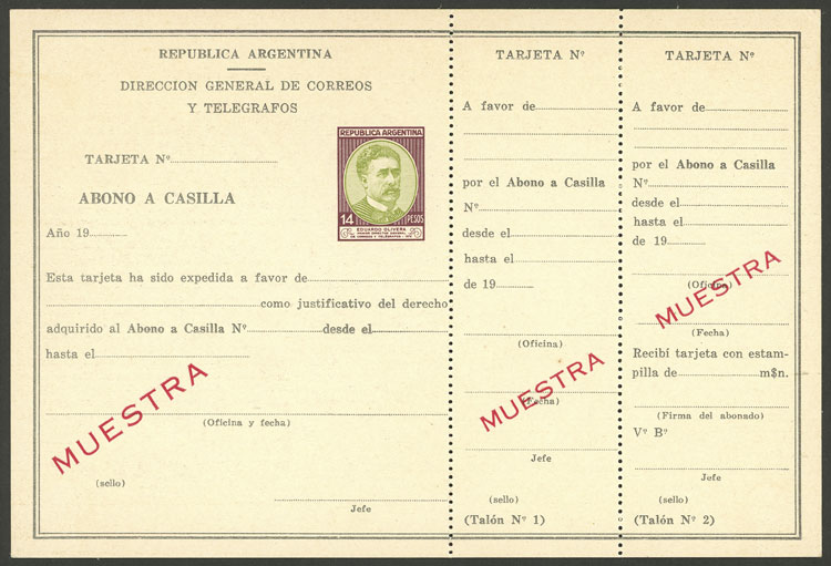 GJ.AAC-11, 1939/9 PO box payment 14P. (Olivera) with MUESTRA overprint, excellent quality, rare! (Image) (Image-02)