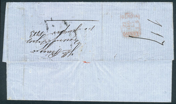 mercante que salió el 30 para Valparaíso y la lleva recomendada el joven francés Don Gustavo Gorniyú". It shows a very alternative route to the usual postal routes, possibly due to the political and military events at the time, very attractive! (Image)