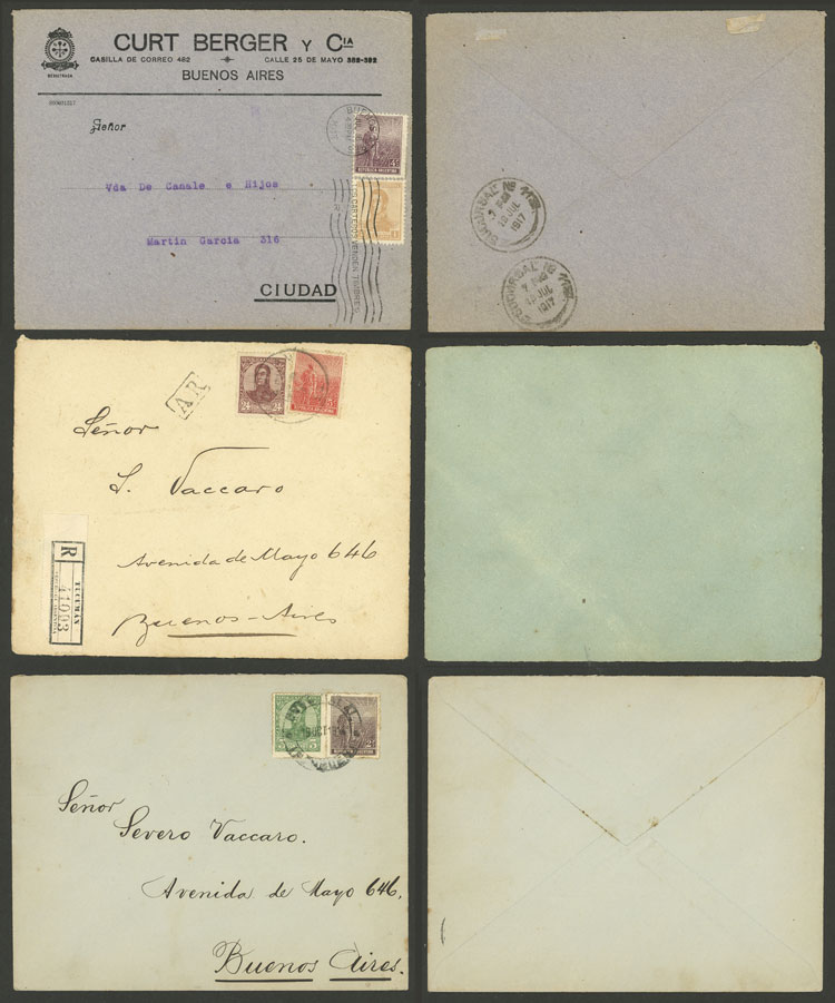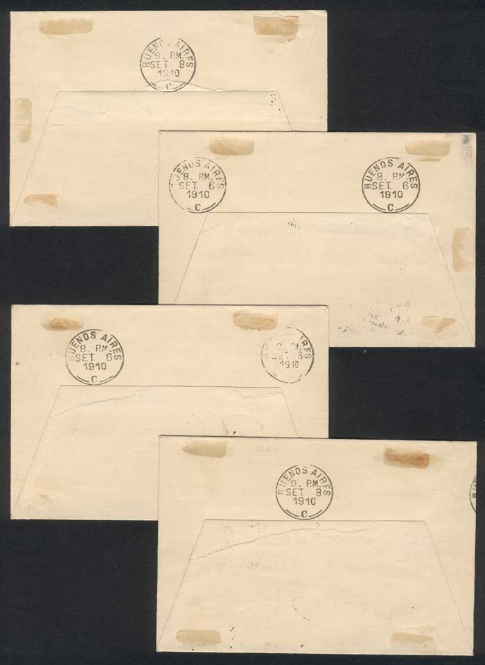 Covers franked with stamps of the Centenary issue, used in Buenos Aires between 6 and 8 September 1910, with special postmarks of the "EXPOSICIÓN FILATÉLICA INTERNACIONAL DEL CENTENARIO", VF and rare! (Image) (Image-02)