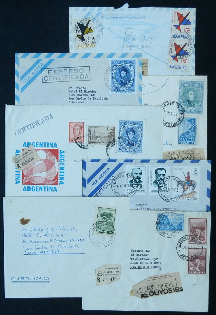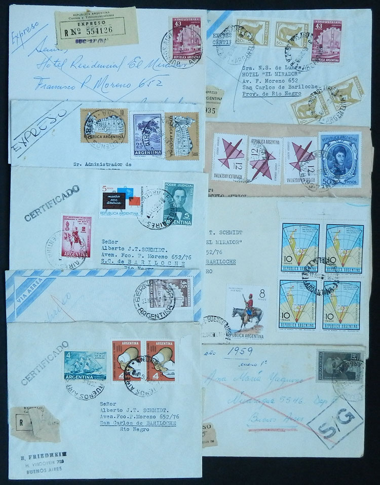 Covers sent in the 1960s, most to Bariloche and franked with good registered postages, including high values of definitive stamps that are fairly scarce on cover!