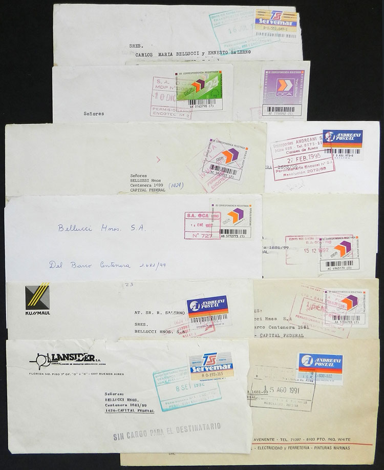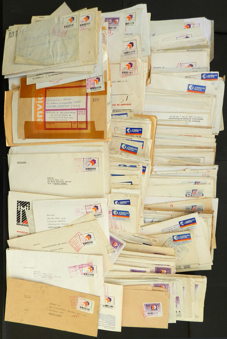 PRIVATE POSTS: Box with many hundreds of covers (I estimate between 500 and 750) posted in the 1990s by private posts OCA, Andreani and Servemar, wide range of stamps and postmarks, very interesting group for the specialist! (Image) (Image-02)