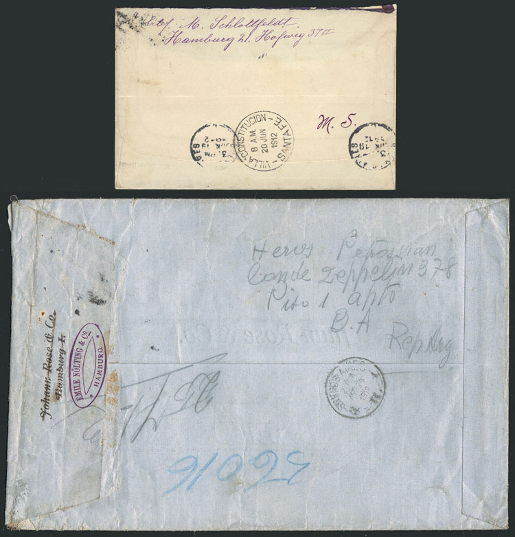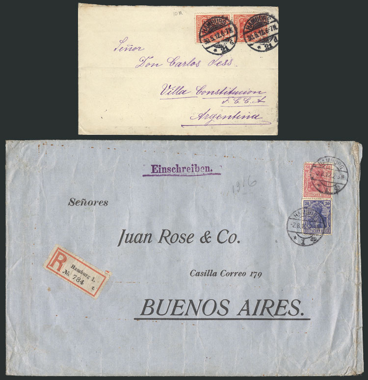 Covers sent to Argentina in MAY and AUG/1912, one registered, fine quality! (Image)