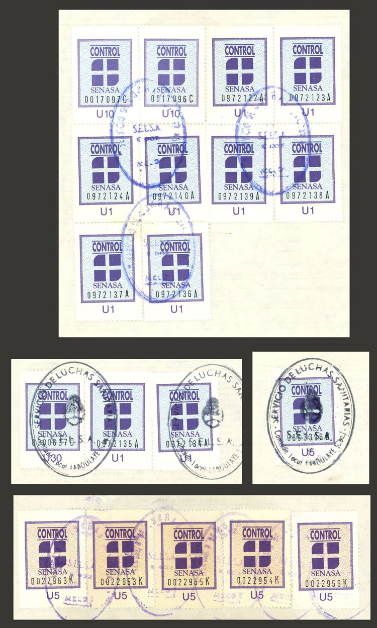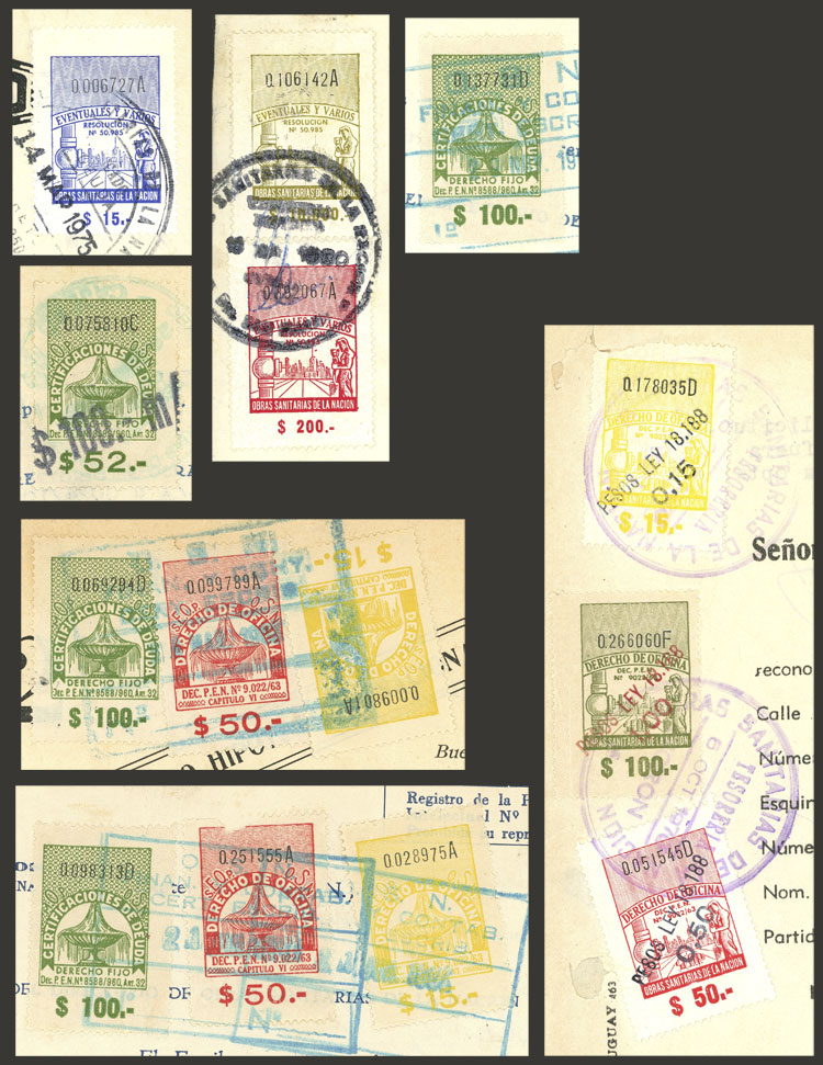 Documents with revenue stamps of: "Eventuales y varios", "Certificaciones de deudas" and "Derecho de oficina", rare group! (Image) (Image-02)