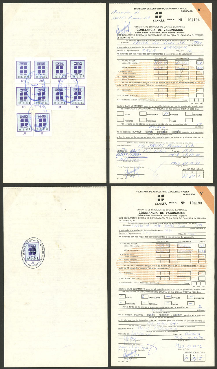 VACCINE AGAINST FOOT-AND-MOUTH DISEASE: 4 Cattle vaccination certificates with interesting stamps, VF quality! (Image) (Image-02)
