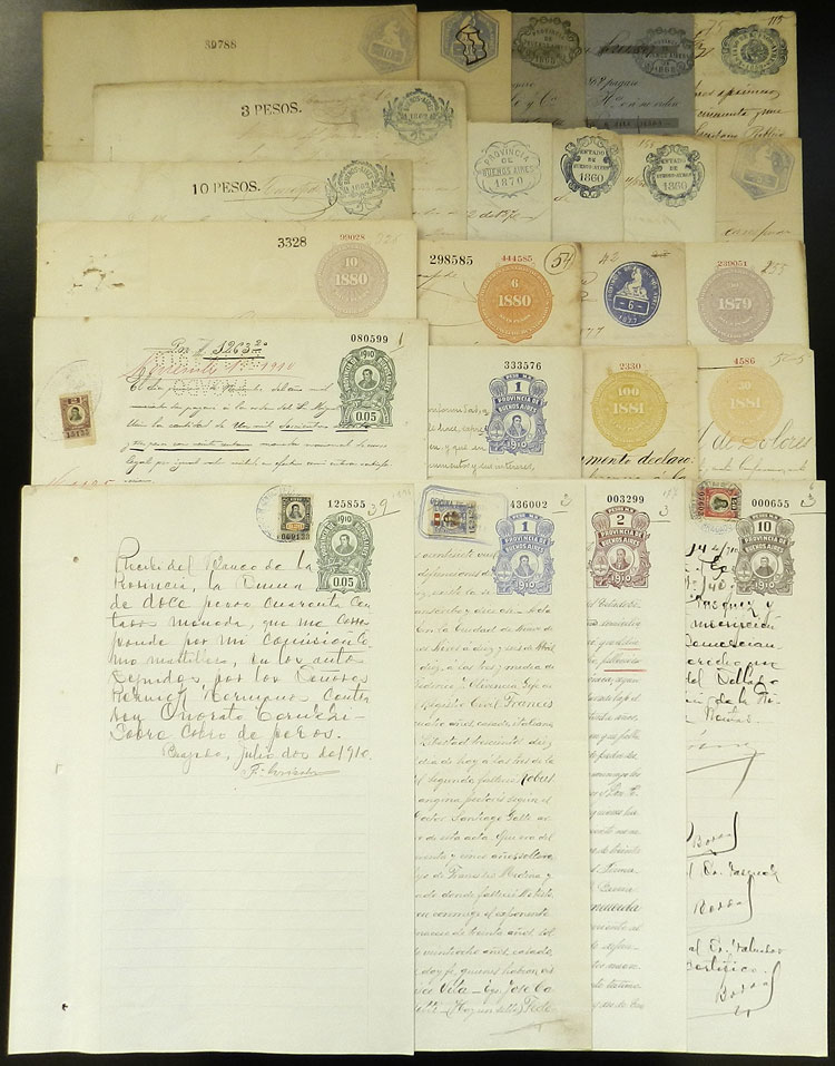 of Buenos Aires: Revenue stamped paper, 23 documents of years 1859 to 1910, VF general quality, rare group! (Image)
