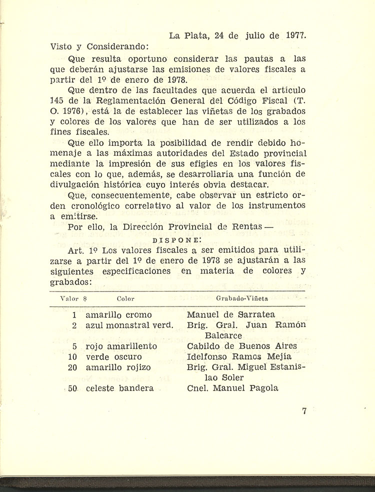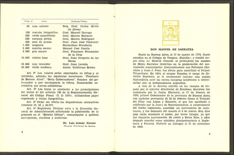 Province of BUENOS AIRES: Book of 43 pages with the decree and specimens of the issue of revenue stamps of the year 1978 (17 values between $12 and $50,000), excellent quality, very rare! (Image) (Image-02)
