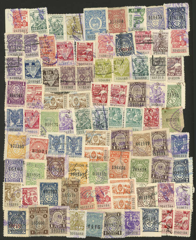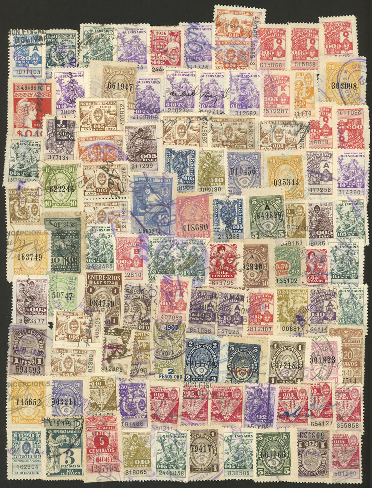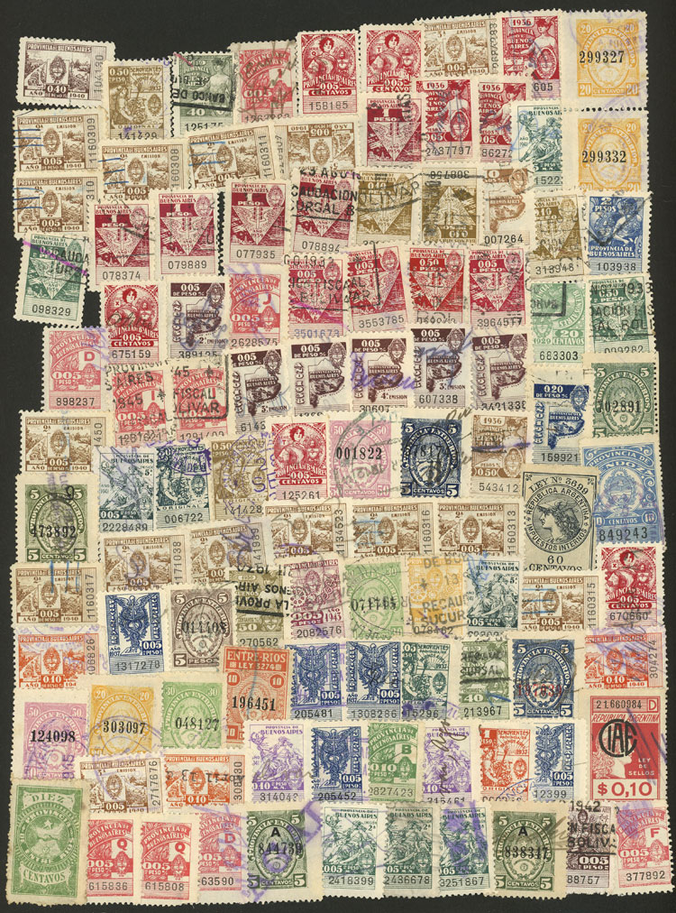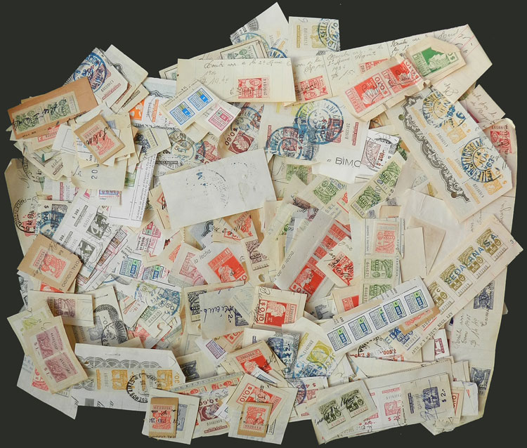 SEVERAL HUNDREDS revenue stamps, very varied, in general of very fine quality (completely unchecked, some examples could have small defects), very good opportunity! IMPORTANT: Please view ALL the photos of the lot, because all the