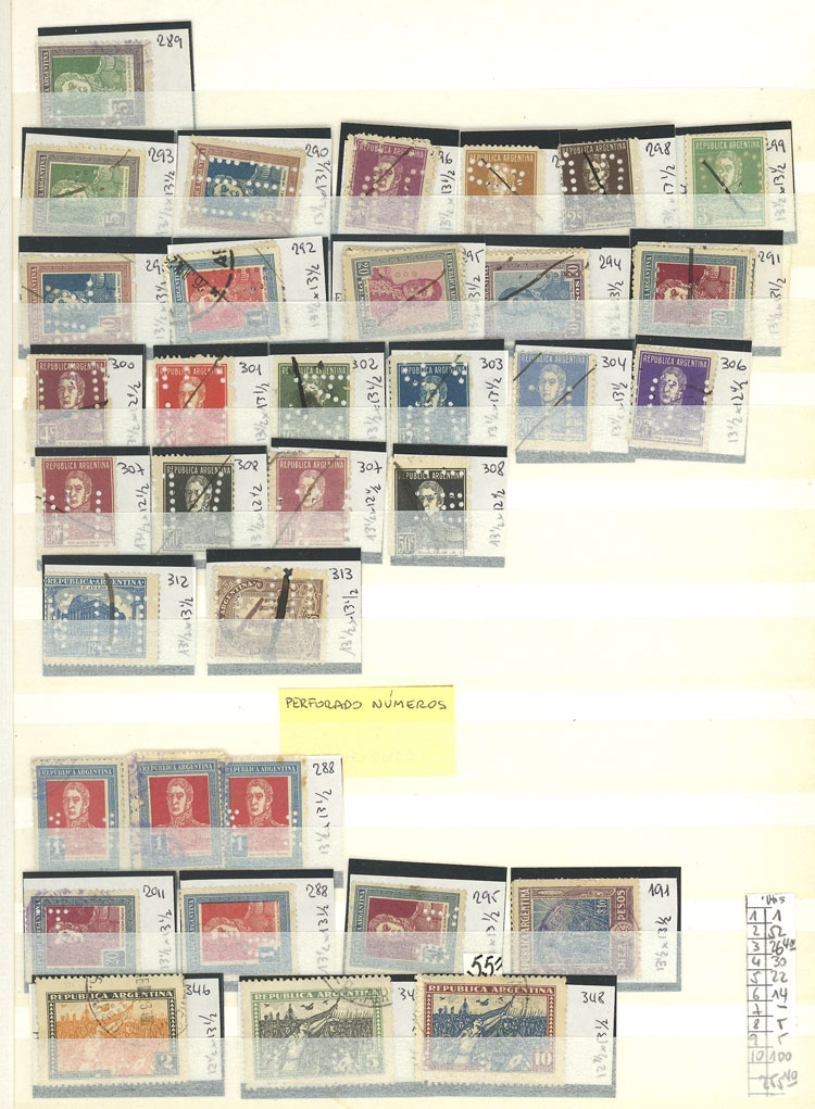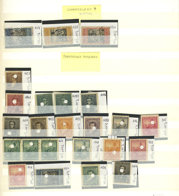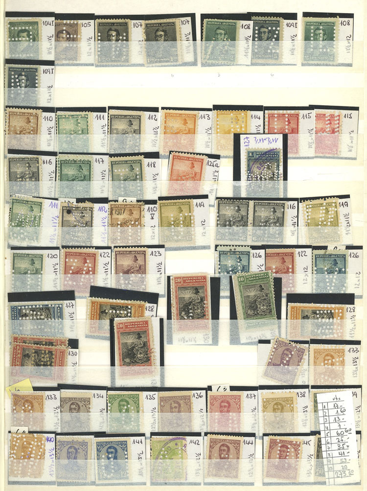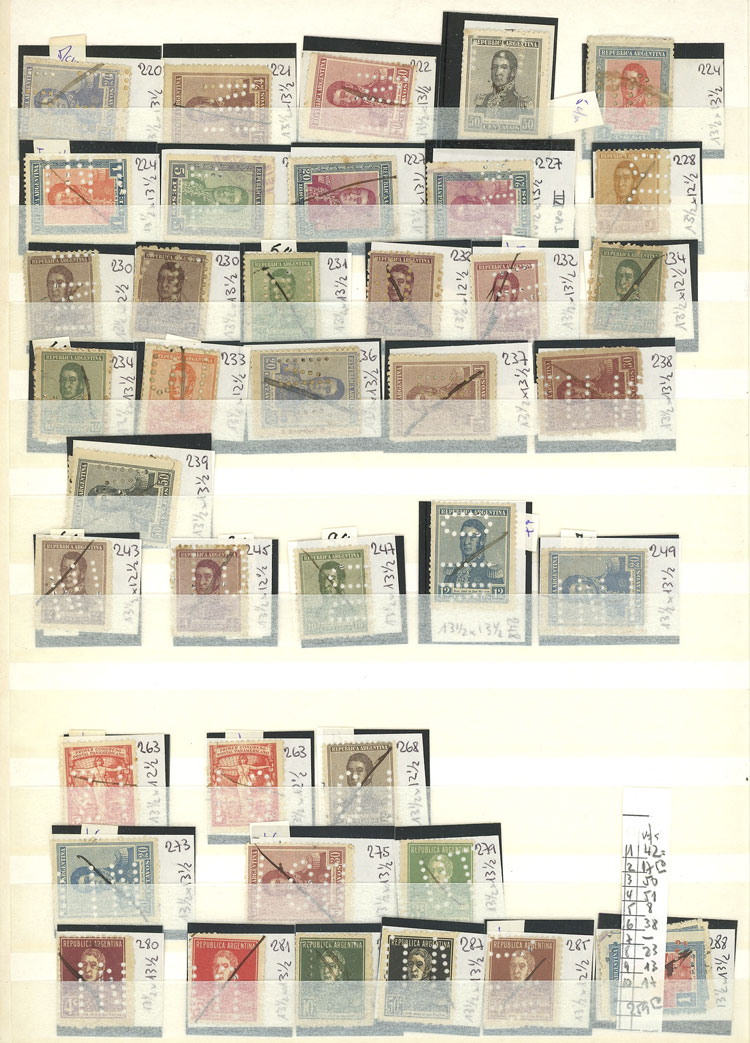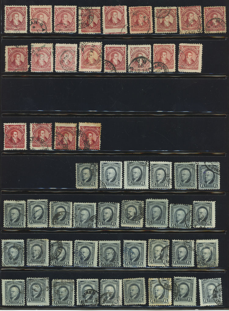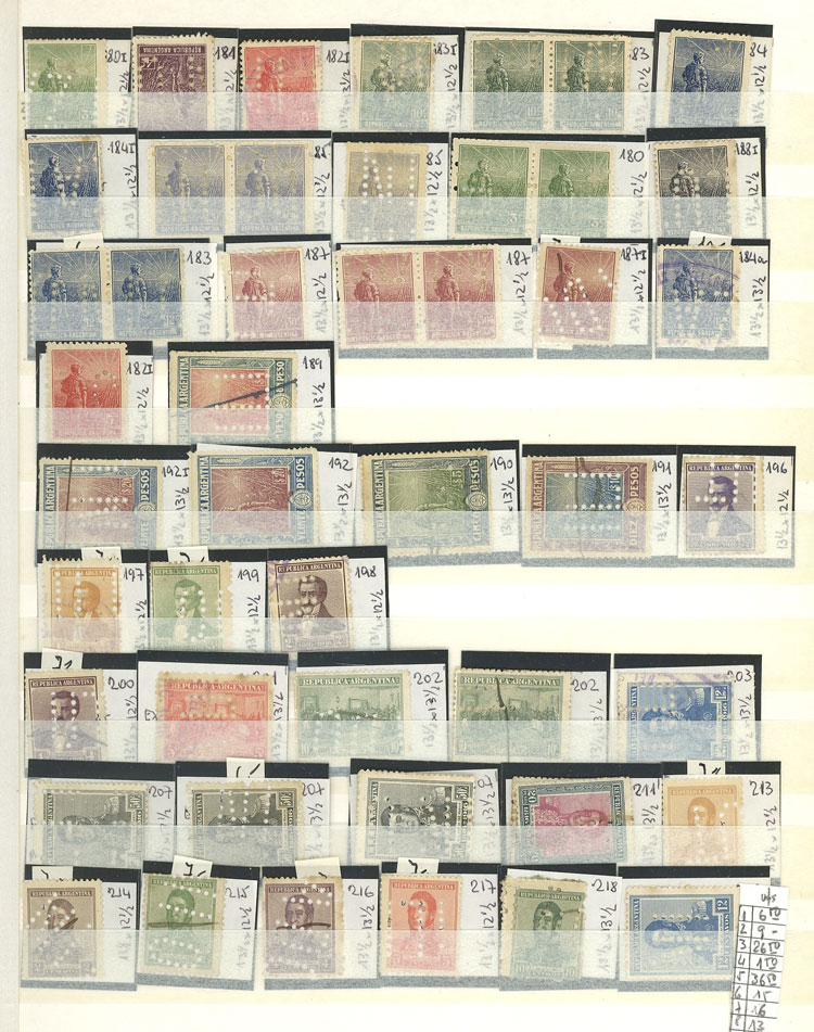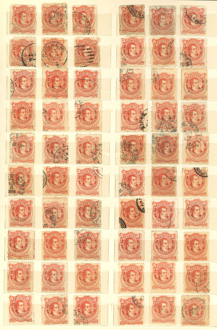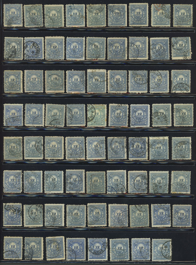 SEVERAL THOUSANDS stamps of the Rivadavia Belgrano & San Martin issue, used and COMPLETELY UNCHECKED. The expert will surely find watermark and perforation varieties, also good cancels, very attractive! (Image) (Image-02)