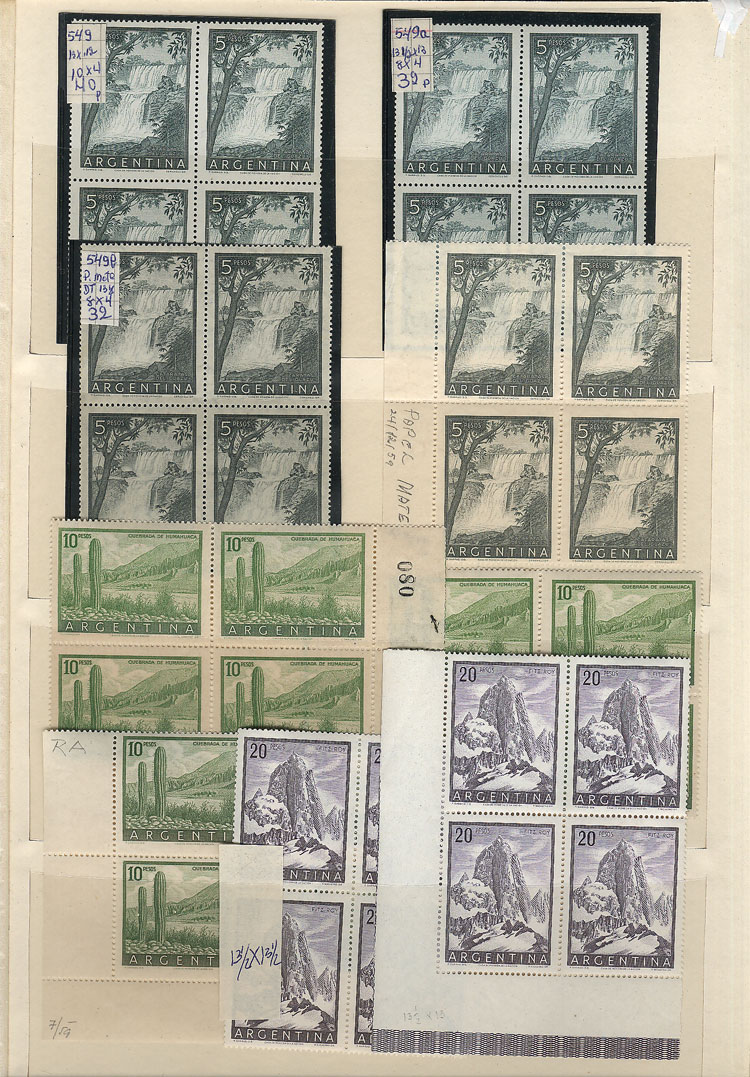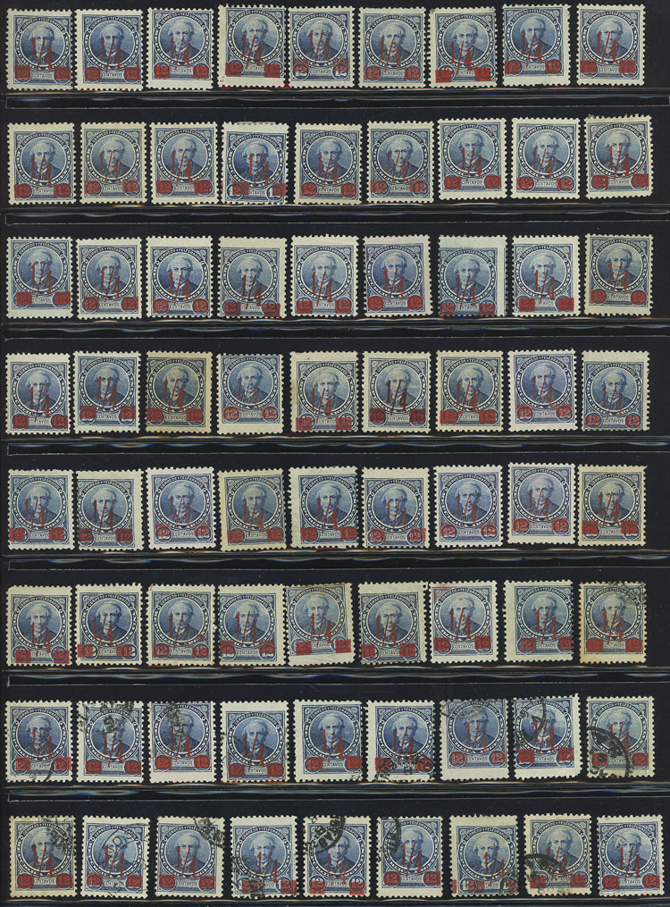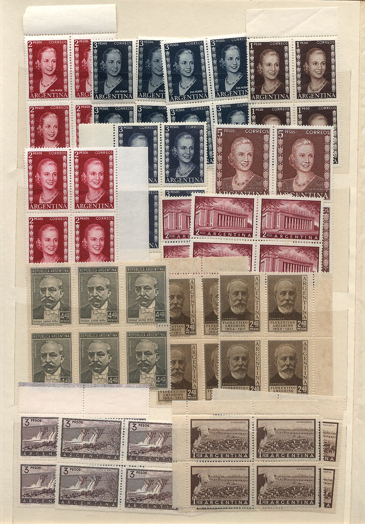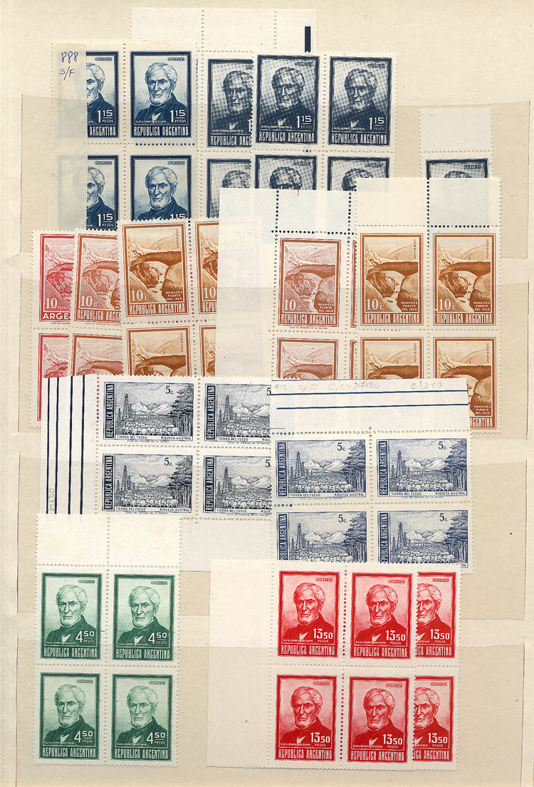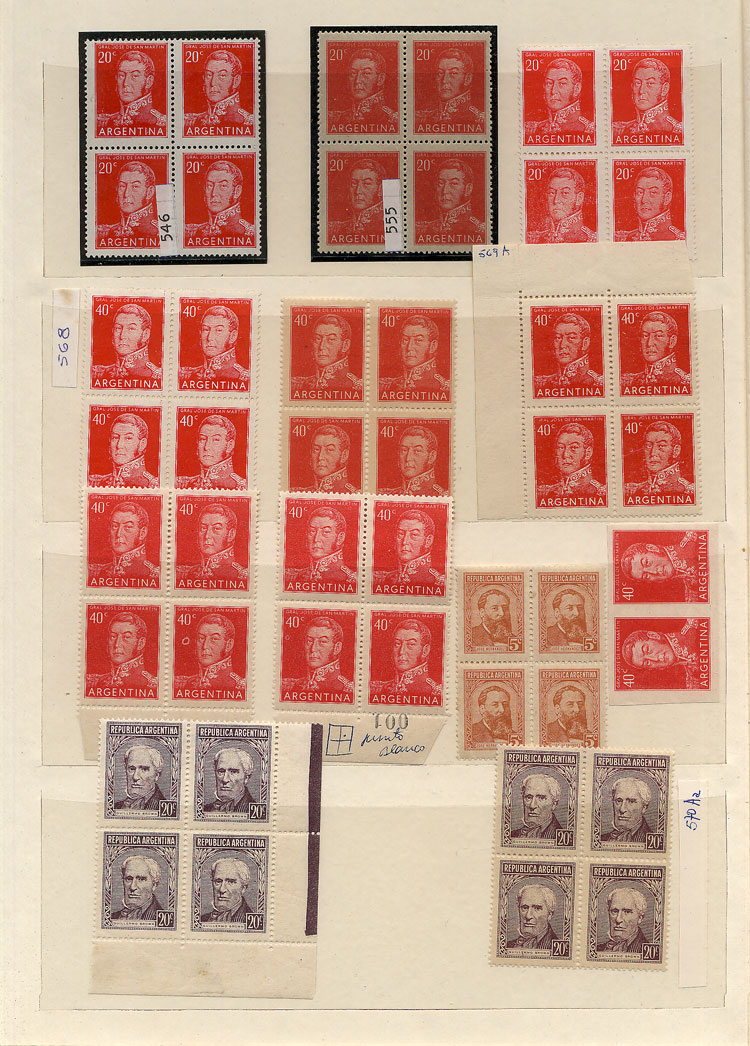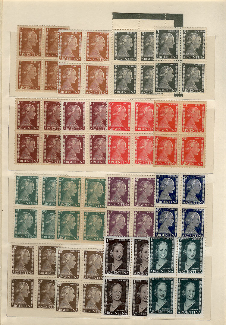 PUNCH CANCEL: Blocks of ½c. and 12½ of the "3 Próceres" issue, all with "star" bulk mail cancel , some with DOUBLE CANCELLATION, VF quality, rare group: NOTE: The previous owner paid US$346.50 for this lot! (Image)