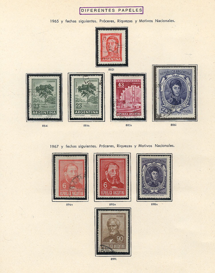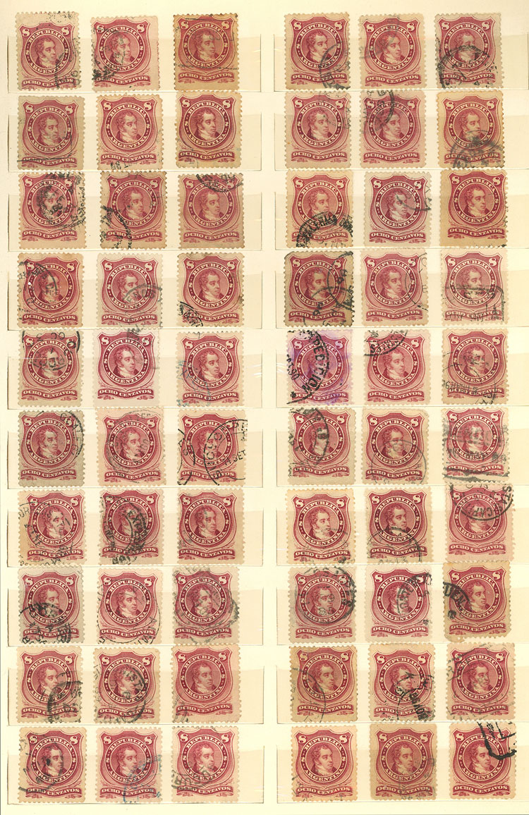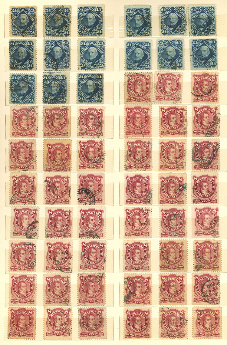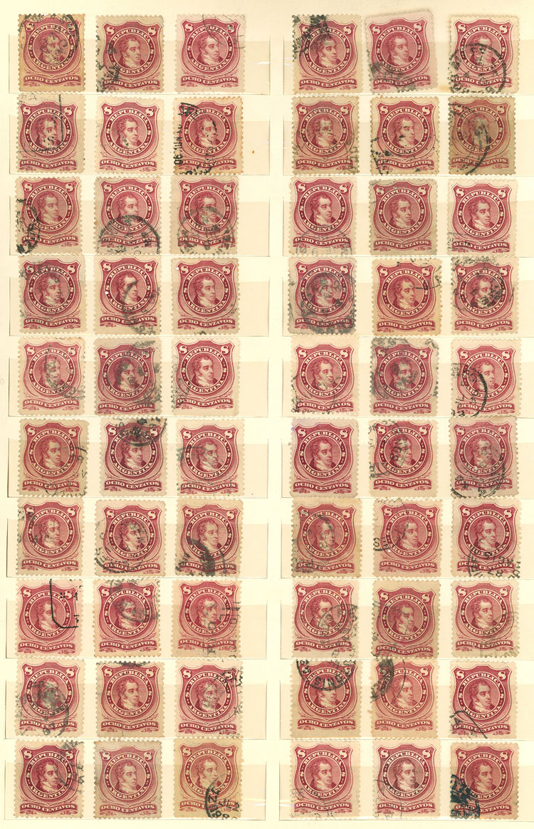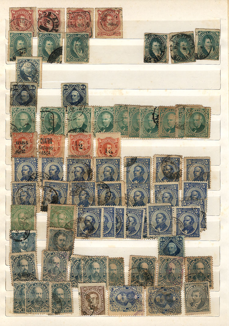 with SEVERAL HUNDREDS stamps of the Proceres & Riquezas I issue neatly mounted in stockpages, most used but it also includes some mint examples, interesting lot to look for rare papers and varieties, good opportunity at low start! IMPORTANT: we only