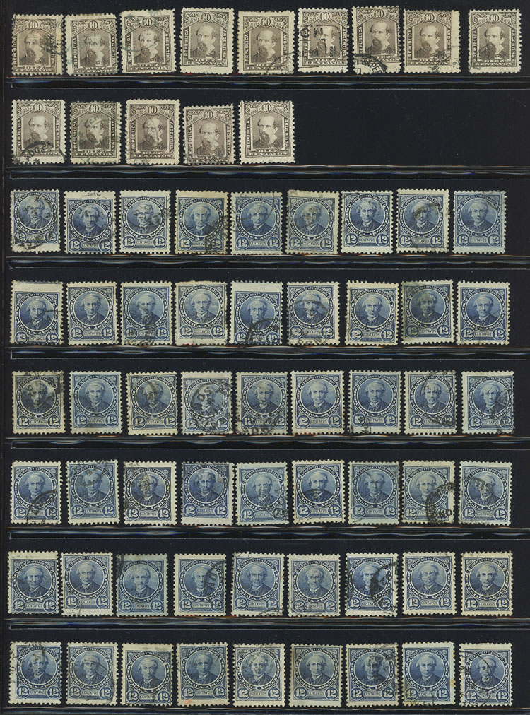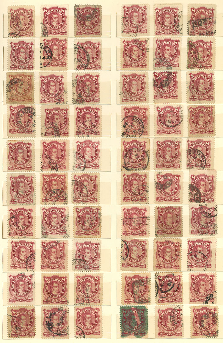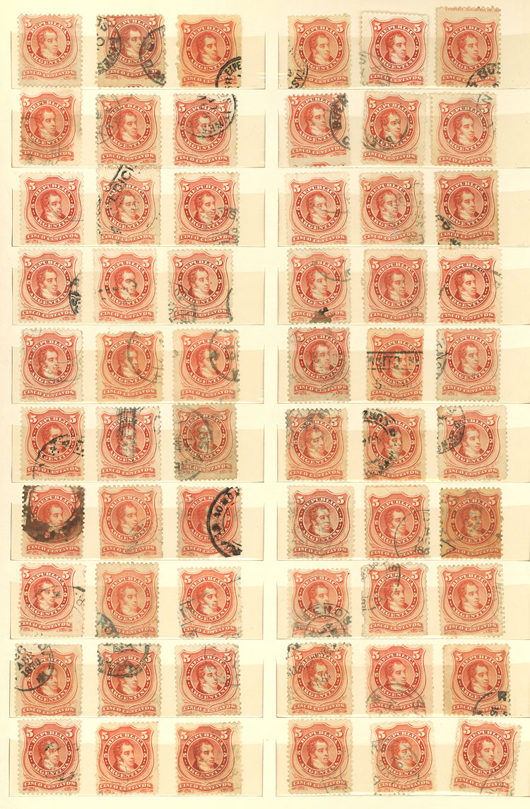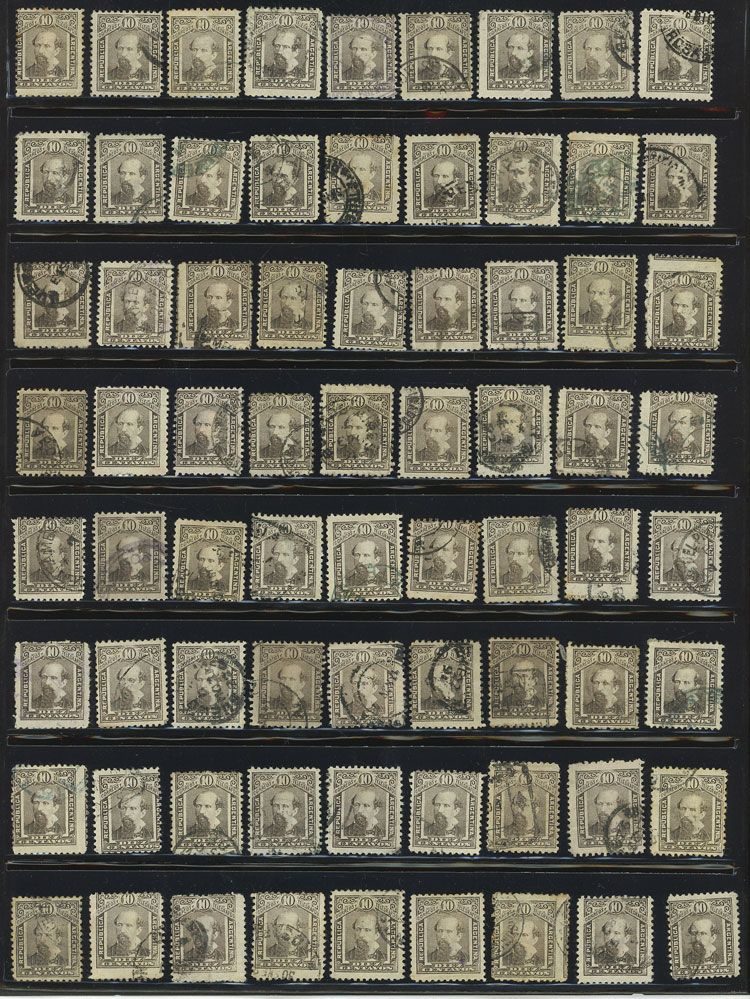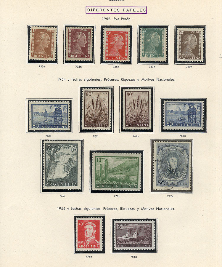 with SEVERAL HUNDREDS stamps of the Proceres & Riquezas I issue neatly mounted in stockpages, most used but it also includes some mint examples, interesting lot to look for rare papers and varieties, good opportunity at low start! IMPORTANT: we only