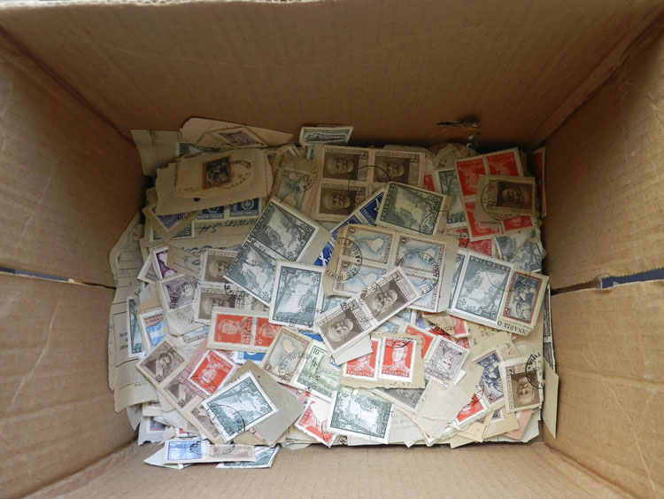 Box with large number (I estimate several thousands) of very old used stamps, completely unchecked. Perfect lot to look for varieties in perforation, paper, watermark, and good cancels! (Image) (Image-02)