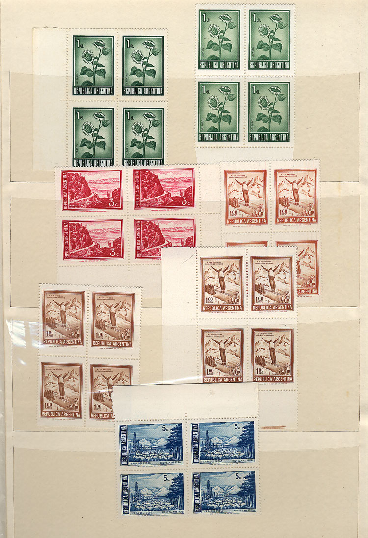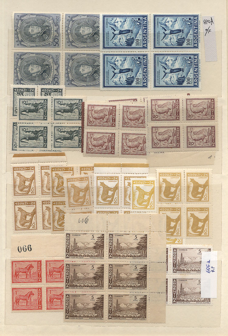 Stockbook with accumulation of stamps from all periods in BLOCKS OF 4, with many blocks of large value of the definitives of 1950-70s including high values. Most are MNH, also some lightly hinged and a few may have a minor defect. VERY