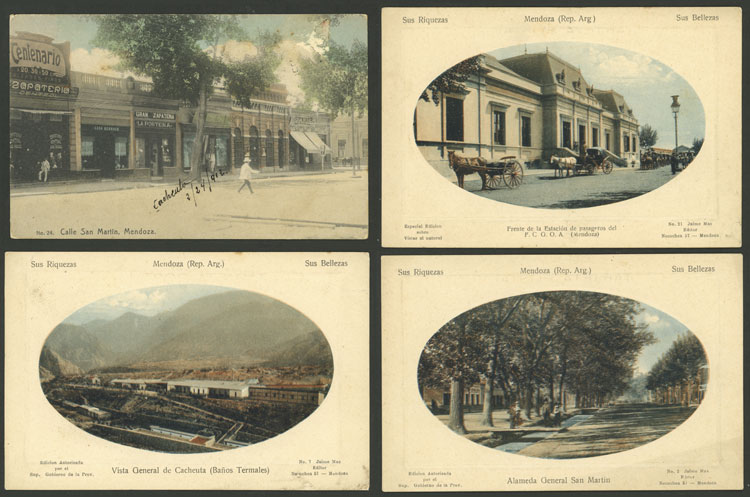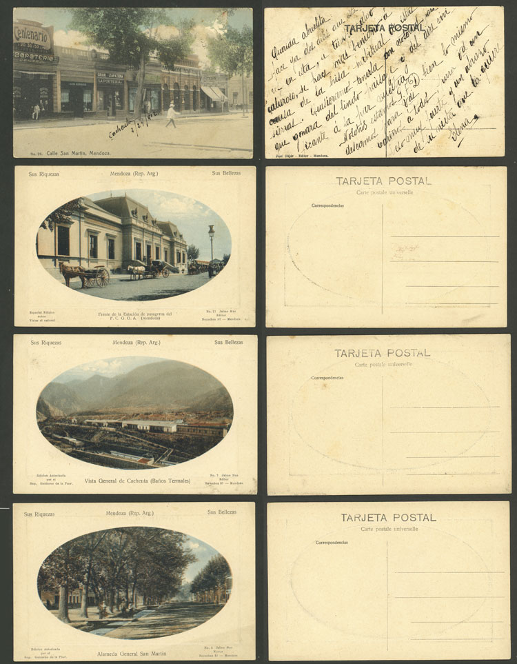 MENDOZA: 8 old postcards with very good views, excellent general quality, rare, market value US$25 to 100 each, good opportunity! Important: please view ALL the photos of the lot, because all the cards have been scanned (both sides)! (Image) (Image-02)