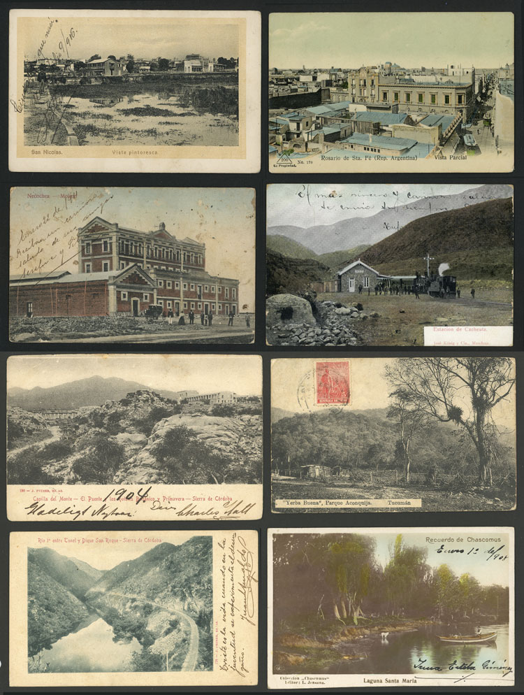 Old postcards with very good views of San Nicolás, Rosario, Necochea, Estación de Cacheuta, etc., almost all of fine to VF quality, low start! IMPORTANT: please view ALL the photos of the lot, because all the material has been scanned. (Image) (Image-02)