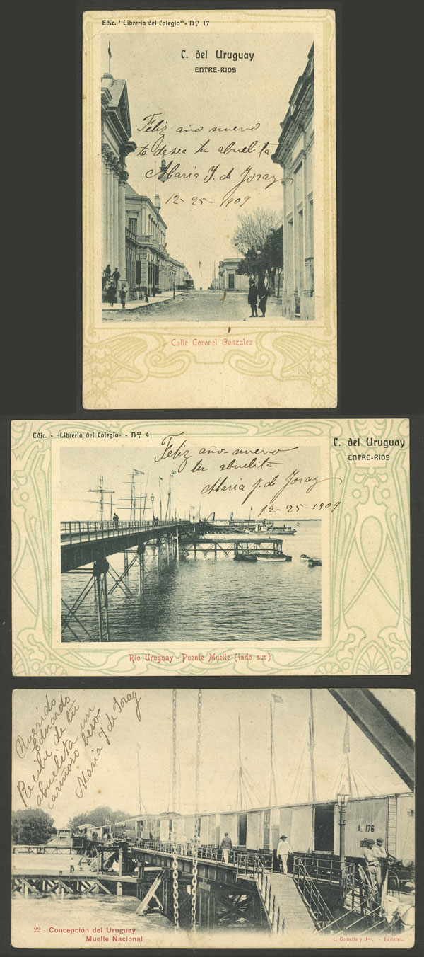 CONCEPCION DEL URUGUAY: 3 Old cards with very good views, one with tear, the rest of fine to VF quality, rare! (Image) (Image-02)