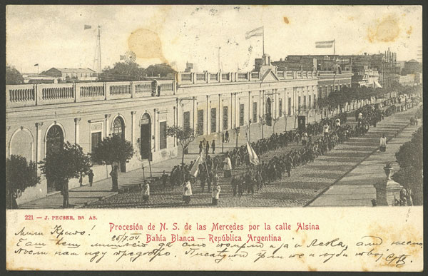 BAHIA BLANCA: religious procession in Alsina street (editor J. Peuser), sent to Trieste in 1904, very rare! (Image) (Image-02)